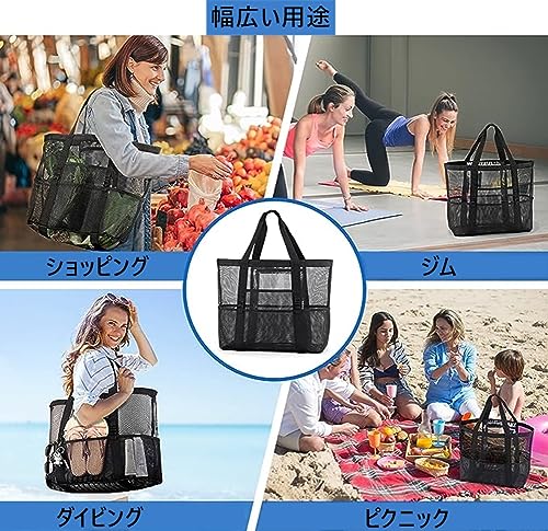 ショッピング、お買い物用バッグとしてはもちろん、通気性、速乾性に優れのメッシュ生地でビーチバッグとして、温泉、ジム、ビーチ、海、旅行などの時にもご利用いただけます。