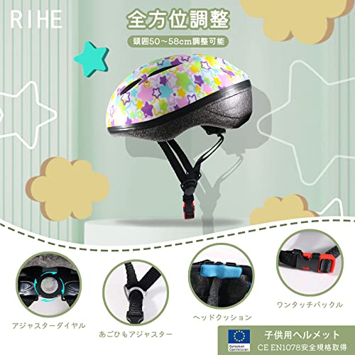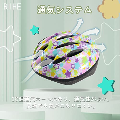 RIHE こども用ヘルメット 軽量 自転車 ヘルメット 子供用 男の子 女の子 通学 マークCE 安全性 通気 流線型 スキー スケートボード 子供 スポーツ サイクリング アジャスター付き(パープルホシ)