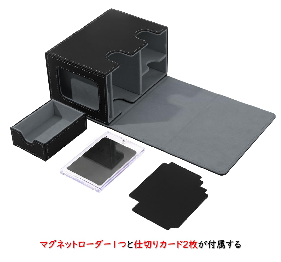 AWESOPAL トレーディングカードケース、デッキケース マグネット式の表示ウィンドウとダイストレイ付き (ブラック&グレー)