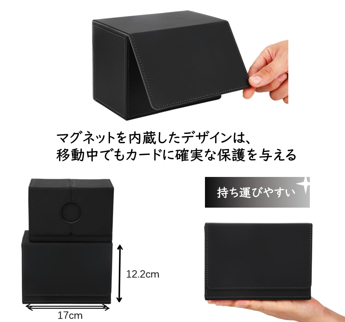 [Formemory]マグネット式 デッキケース 3列 1800枚収納 大容量 PUレザー製 カードケース 卓上ゲーム用 大容量ホルダー カードプロテクター 収納ケース トレーディングカード 保管 硬質ケース 防水 手入れ簡単(専用プロテクター10枚&保護クッション3個付属 ) (ブラック)