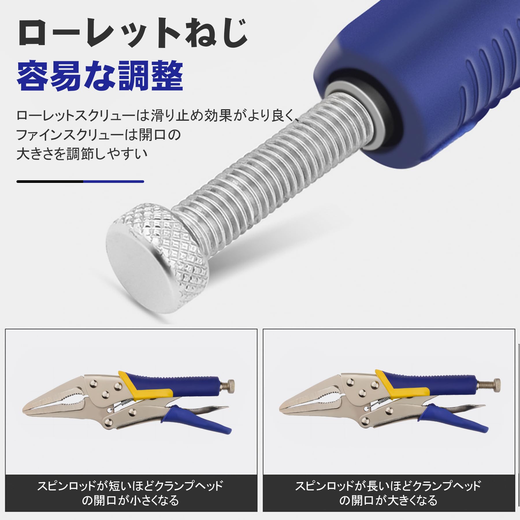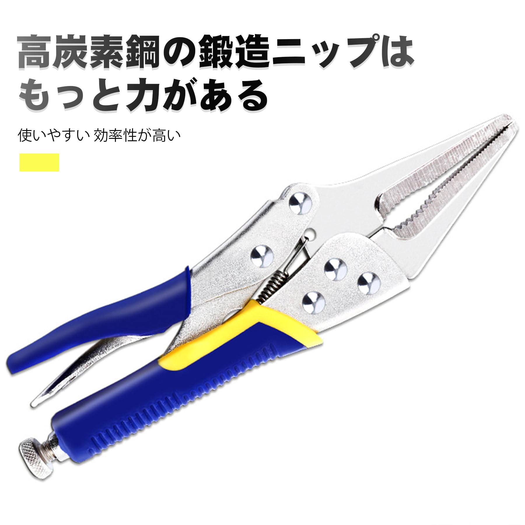 Breezliy ロングノーズロッキングプライヤー ロングノーズ バイスロックプライヤー ロッキングプライヤーロングノーズ(ワイヤーカッター付) ロッキングプライヤー バイスプライヤー 溶接 板金 ストレート 固定 最大開口74mm 全長225mm