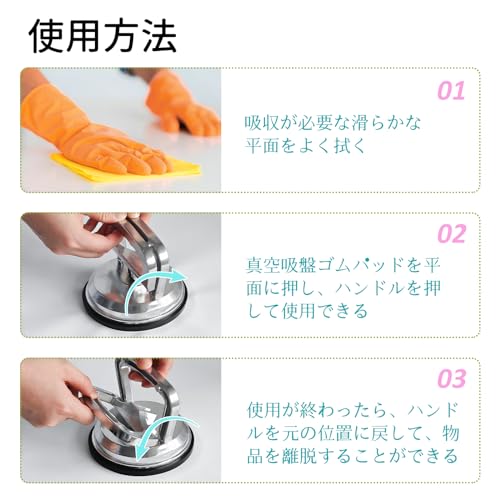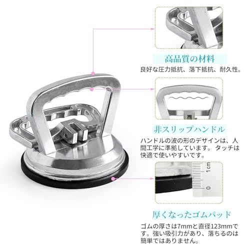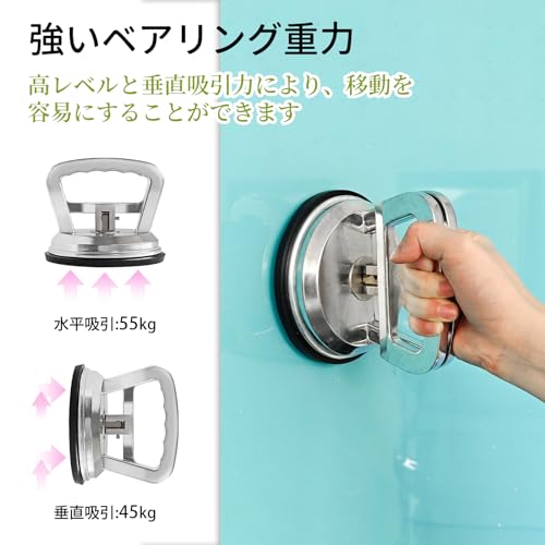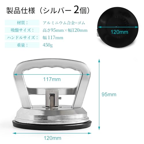 DXTECHPRO バキュームリフター サクションカップ ガラス 吸盤 ボディ凹み吸盤 車凹み直し ガラス 金属板 大理石 タイル 運搬 シルバー(シルバー 2個入)