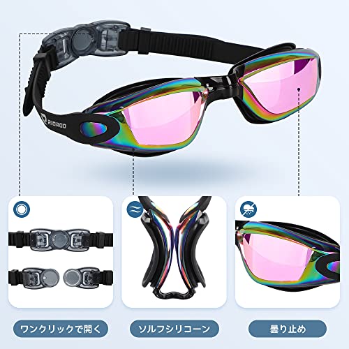 RIOROO 水泳用ゴーグル、水泳用ゴーグル 漏れ防止 曇り止め 女性用 男性用 大人 若者用