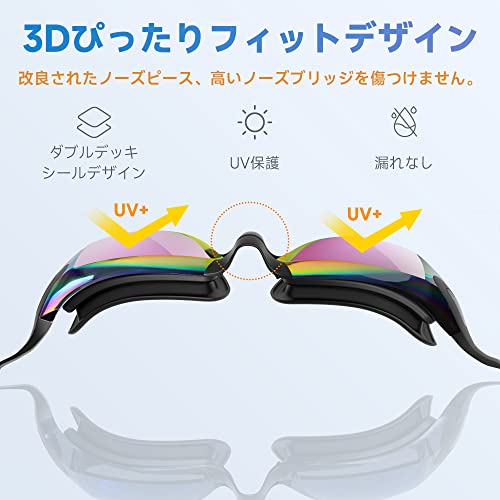 [Findway] ゴーグル 水泳、スイミングゴーグル 大人 水泳ゴーグル UVカット 曇り防止 水漏れ防止 柔らかいシリコン ノーズブリッジ 180°+クリアの広い視野 適用大人男女 ジュニアのプール/海水浴/競泳 フィットネス 水中メガネ