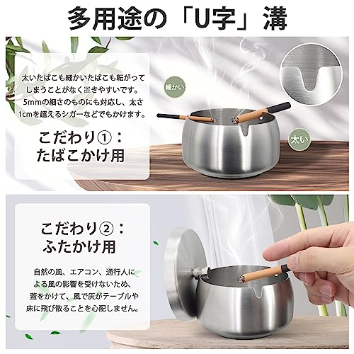 自然の風、エアコン、通行人、書類の開封などによる風の影響を受けづらく、蓋を「U字」溝にかけて、たばこの灰をはじくときに風で灰がテーブルや床に飛び散りにくいです。