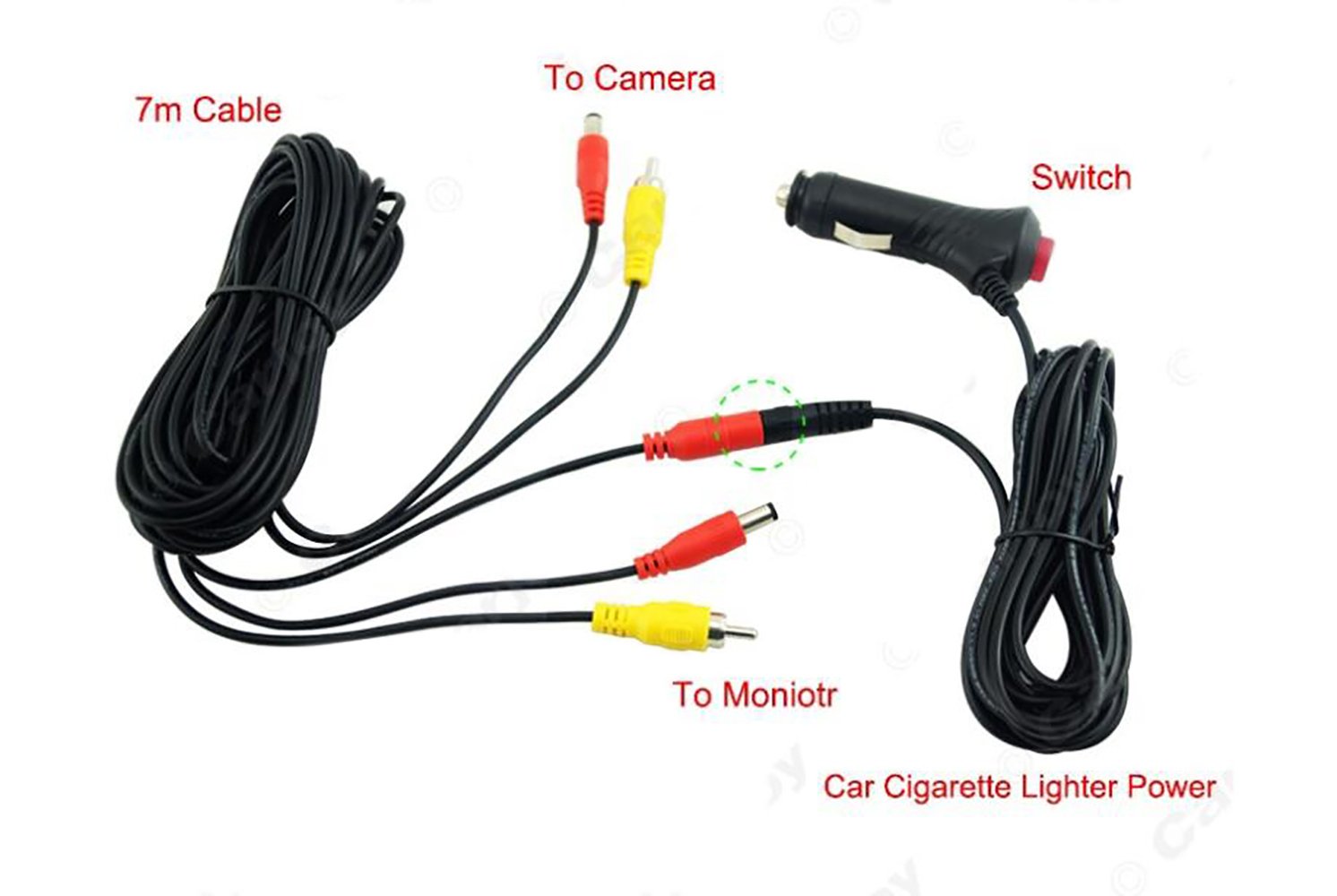 バックカメラ ケーブル 電源 延長 コード 7m モニター RCA 接続 車載カメラ取付補助ケーブル シガーアダプター 12V