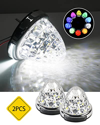 【2024年11月最新型・防水加工】Cartist LED サイドマーカーランプ 路肩灯 両面発光 トラック専用 IP67 DC 10-50V 無極性 丸型 新型LEDマーカー 高輝度 色選択可 メッキリング 2個セット 耐高温PC素材 メッキ付き (2個セット, ホワイト)