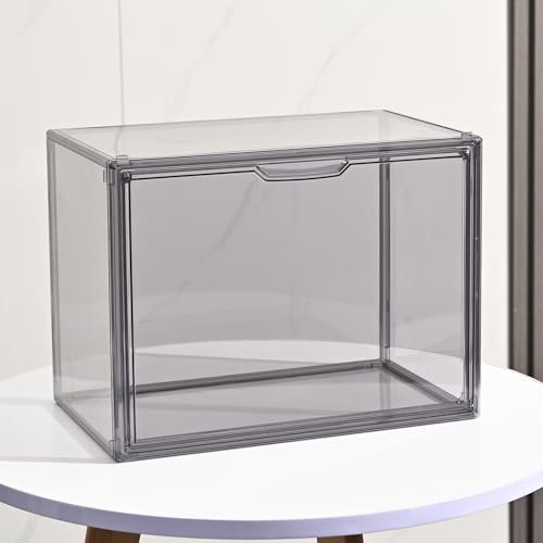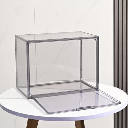 GUDEMAY 透明の収納ケース 積み重ね可能 収納ボックス 組み立て式 プラスチックのマグネット式 ショーケース フィギュアケース 前開 フィギュア き おもちゃ・かばん・財布・靴・書類用 (グレー, 3個入)