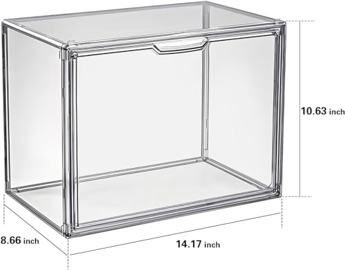 私たちの製品は、透明な収納ボックスで、さまざまな特徴と利点を備えています。詳しくご紹介いたします。 まず第一に、透明なデザインの収納ボックスは、どの角度からでもすぐに保管物を見つけることができます。時間をかけて探す必要はありません。透明な外観で、必要な物品を簡単に取り出せます。 次に、収納ボックスは積み重ねることができるデザインであり、安定した溝が付いているため、簡単に倒れることはありません。これにより、収納ボックスの安定性が向上し、移動も容易になります。また、家やアパート、コンドミニアムのスペースを節約することもできます。 さらに、ディスプレイケースはサイドオープンのドアと磁気式のロックがあり、簡単に開け閉めすることができます。貴重品は、ホコリや液体から保護され、閉じられた収納容器内に安全に収納されます。 また、透明な収納ボックスは、他の製品よりも厚く耐久性のある高品質なPETとアクリルで作られています。ボックスの各側面は硬い素材で作られており、軽い石鹸水で簡単に清掃できます。さらに、硬いプラスチックボードは形状を保ち、変形を防ぐため、より信頼性があります。 最後に、収納ボックスのサイズは適切で、外寸法は14.17インチ×8.66インチ×10.63インチで、重さは3ポンドです。このサイズはさまざまなアイテムを収納するのに十分であり、持ち運びも便利です。 要約すると、私たちの製品は優れた透明な収納ボックスであり、透明なデザイン、安定した積み重ね、磁気式のロック、耐久性と簡単な清掃など、さまざまな利点を備えています。これは、貴重品を整理し保護するために理想的な選択肢です。製品にご興味をお持ちいただき、ありがとうございます。ご質問がございましたら、お気軽にお問い合わせください。