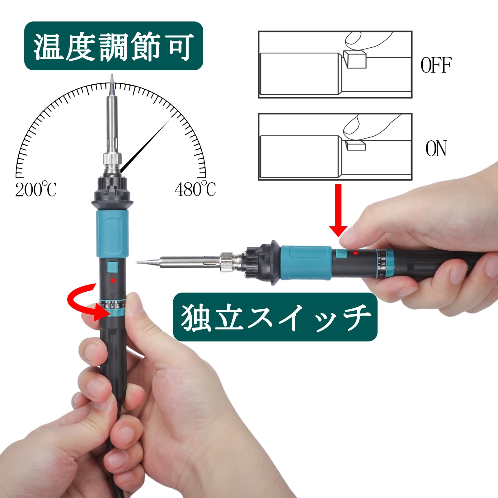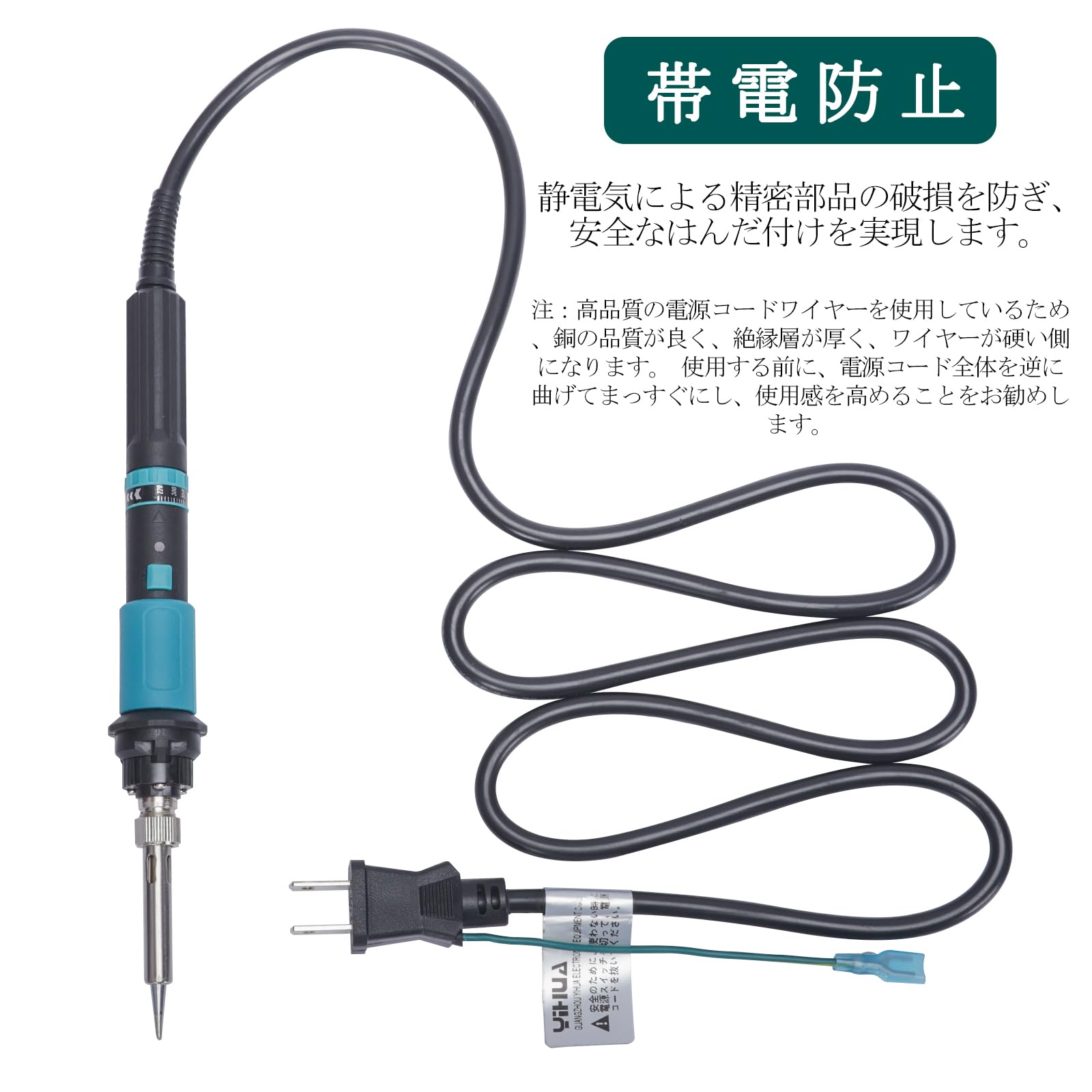 高品質の電源コードワイヤーを使用しているため、静電気による精密部品の破損を防ぎ、スムーズなはんだ付けを実現します。