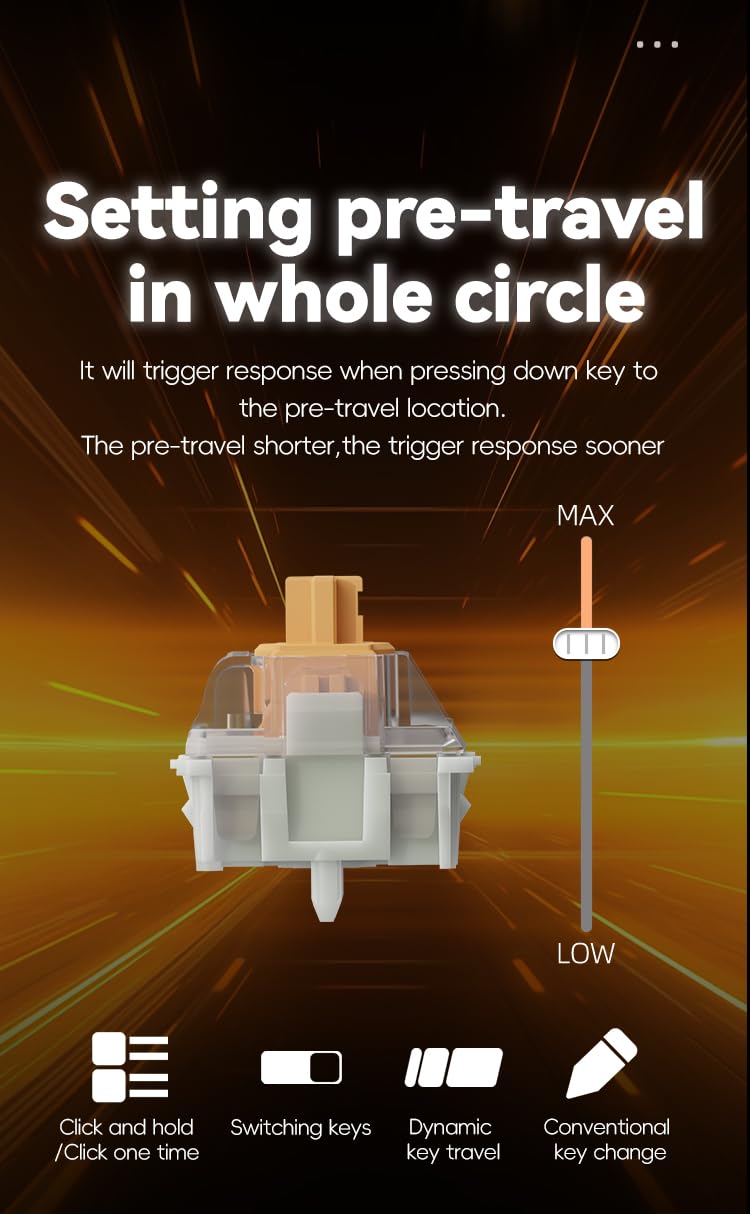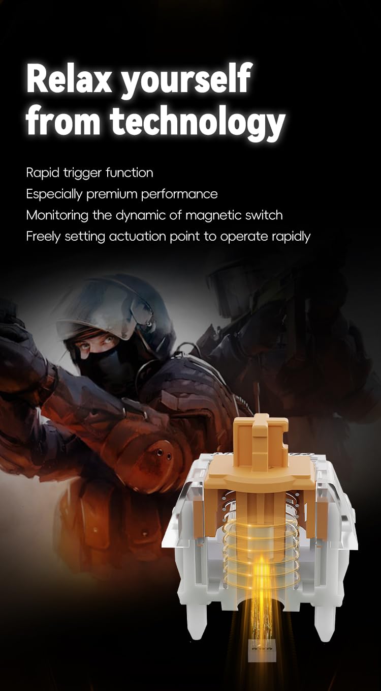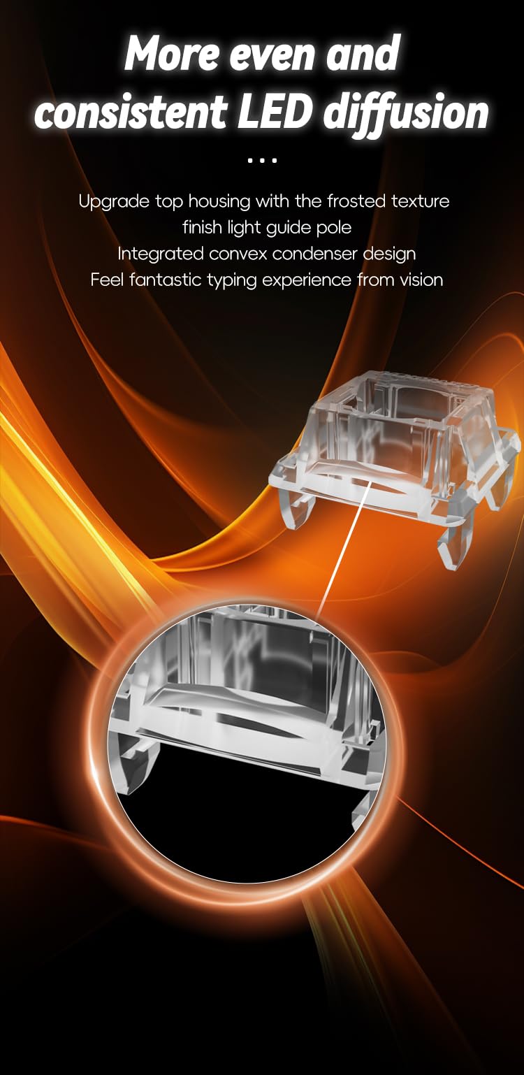 このKS-20デュアルレールGATERONマグネットオレンジキーボードスイッチは、ブラックテクノロジーです。ホールセンサーを利用した無接点マグネットスイッチです。GATERONの特許は機械式キーボードスイッチに磁気誘導技術を応用しています。この磁気スイッチの応用は、機械式スイッチの打鍵感を再び向上させるだけでなく、伝導技術の自由な設定移動も際立たせます。