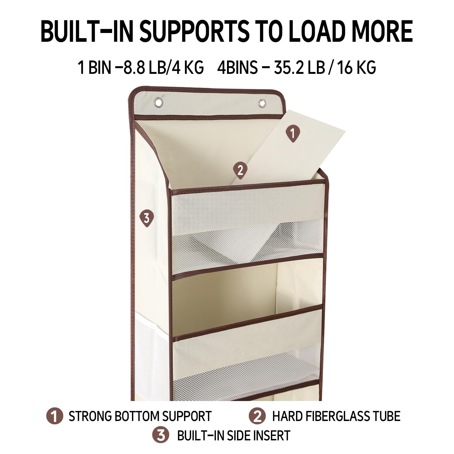 HASONA ウォールポケット 【2024変形防止設計】 5段 ドア掛け 収納ポケット 壁掛け 吊り下げ収納ポケット 頑丈 大容量 不織布 おむつ/タオル/スキンケア用品/ドライヤー/おもちゃなどの収納 フック2個付き (ベージュ)