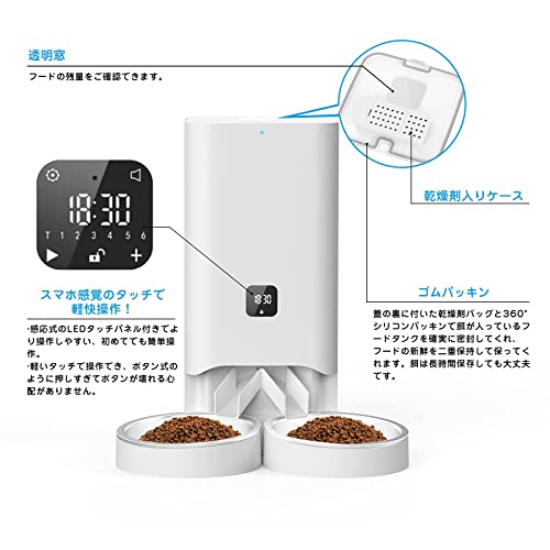 蓋の裏に付いた乾燥剤バッグと360°シリコンパッキンで餌が入っているフードタンクを確実に密封してくれ、フードの新鮮を二重保持して保ってくれます。餌は長時間保存しても大丈夫です。