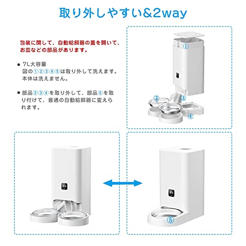 包装に関して、自動給餌器の蓋を開いて、お皿などの部品があります。