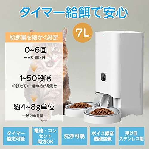 1日6回まで、各6グラム刻みで0~300gまで細かく設定することが可能なので、猫や犬には細かく量を増減できます。