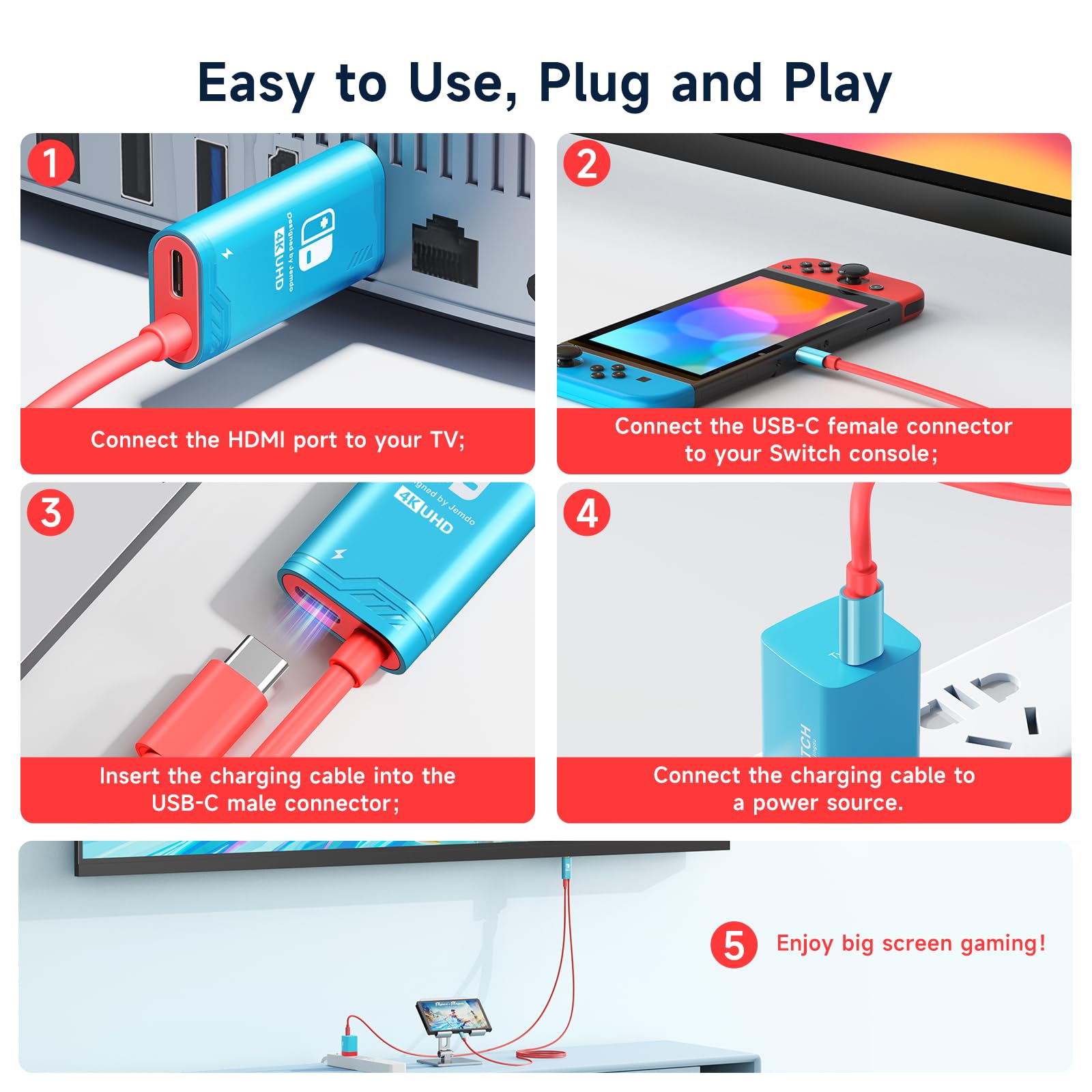Alxum Switch ドック 【2023年最新】 YouTube動画対応 多機能 スイッチ 充電スタンド 直接にTV出力 Switchドック 小型 1080P HDMI変換・TVモード・テーブルモード USB 3.0&Type-Cポート 折りたたみ式 冷却口付き 赤-青 テレビ 接続