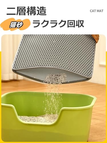 Eachjoy 猫トイレマット 砂飛び散り防止 防水 大型 猫砂取りマット マジックテープ式 (グレー, 55x75)