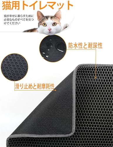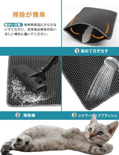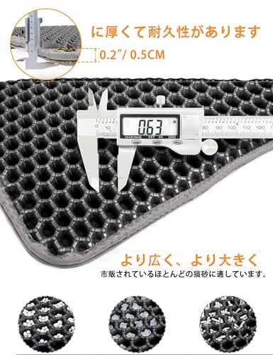 猫砂マット ラージサイズ 猫トイレマット 猫砂 飛び散り防止 猫 トイレ マット 60*45 CM / 75x55 CM / 90x60 CM 猫用トイレに最適 猫砂 マット シワ取り / 滑り止め/簡単クリーニング の グレー 猫 トイレマット - Wayfurr