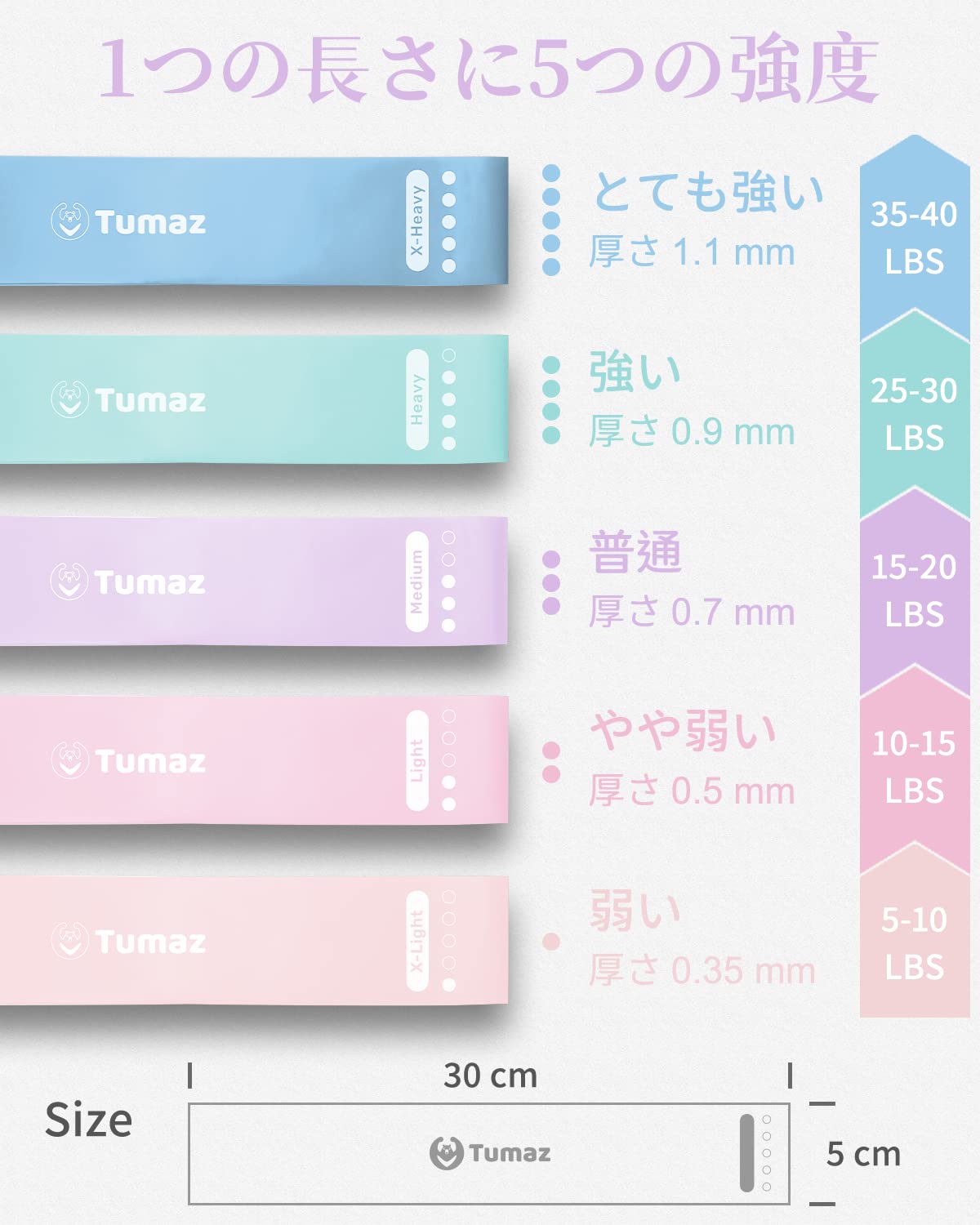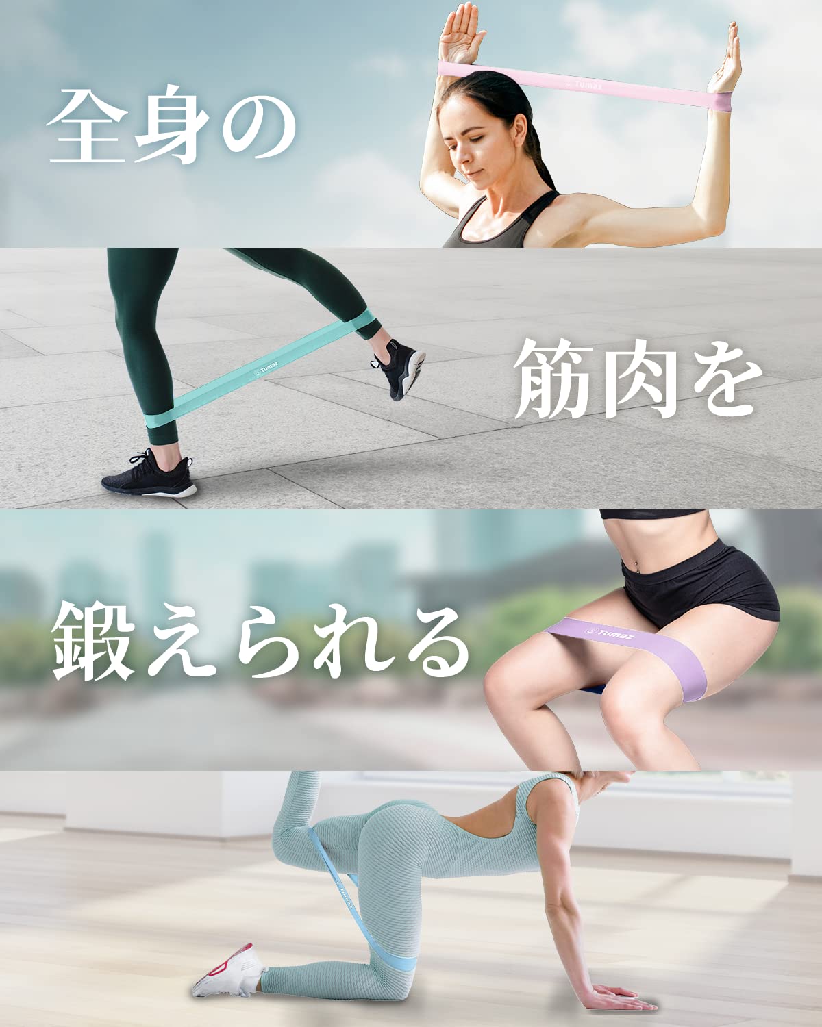 レジスタンスループエクササイズバンド エクササイズバンド ホームフィットネス、ストレッチ、筋力トレーニング、伸縮性のあるワークアウトバンド レディース メンズ キッズ 5個セット