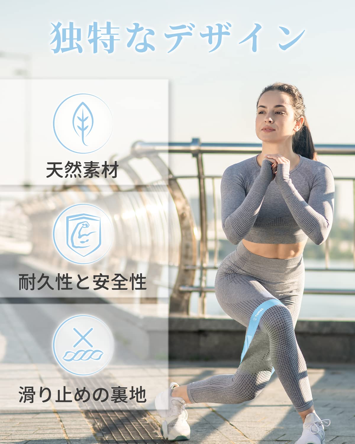 mobifitness トレーニングチューブ レジスタンスバンド 筋トレチューブ ゴムバンド 4段階の負荷 ヨガ ストレッチ 美尻 肩甲骨 背筋 股関節 内転筋 ストレッチ リハビリ 運動器具 セラバンド フィットネス 太もも 痩せ足の筋肉 骨盤底筋 体幹 鍛える エクササイズ 関節強化 全身の 引き締め 天然ゴムresistance band (ワイド版, ブルー(25LBS))
