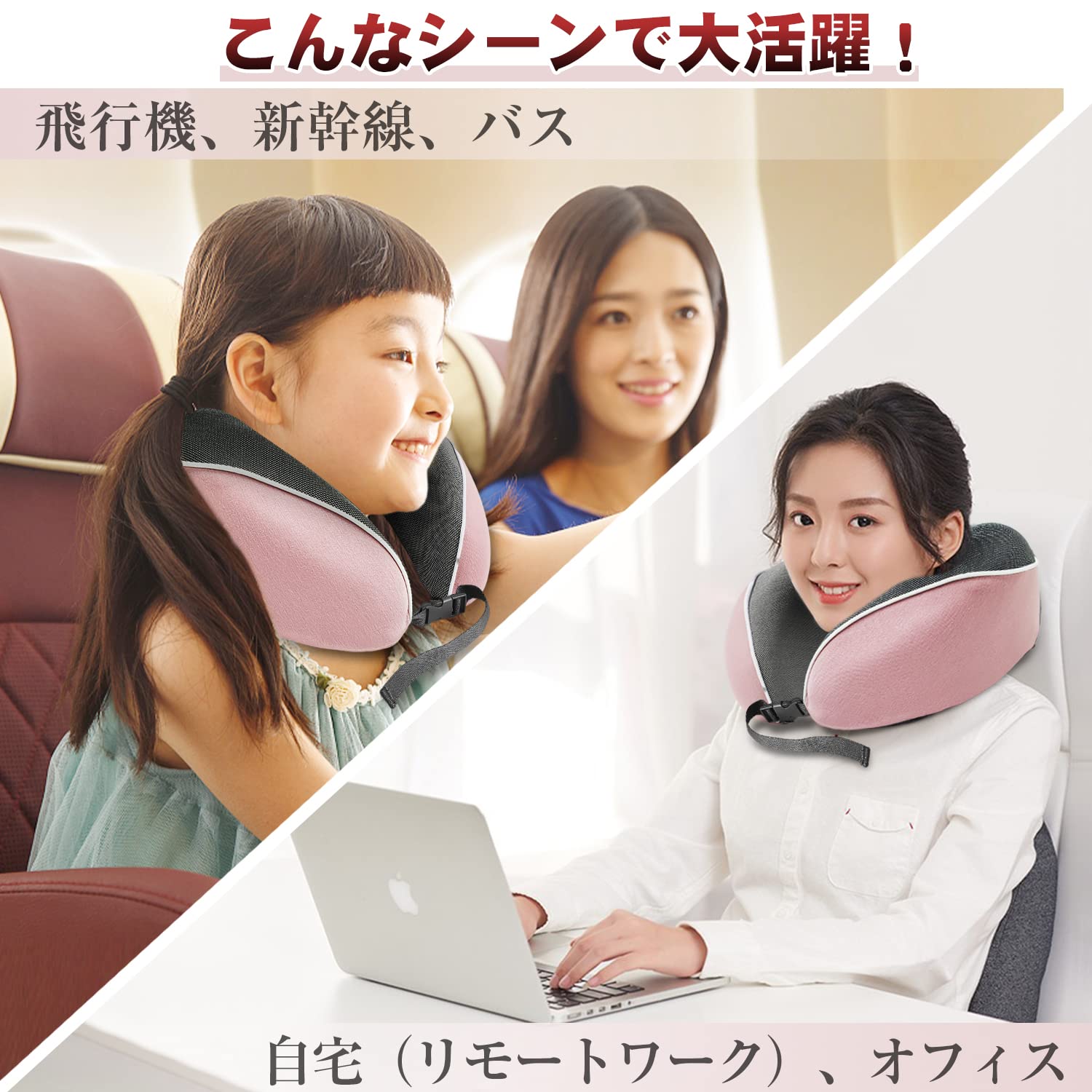 ネックピローとしてだけではなく、車のシートや椅子の背もたれ用クッションとしても使えます。