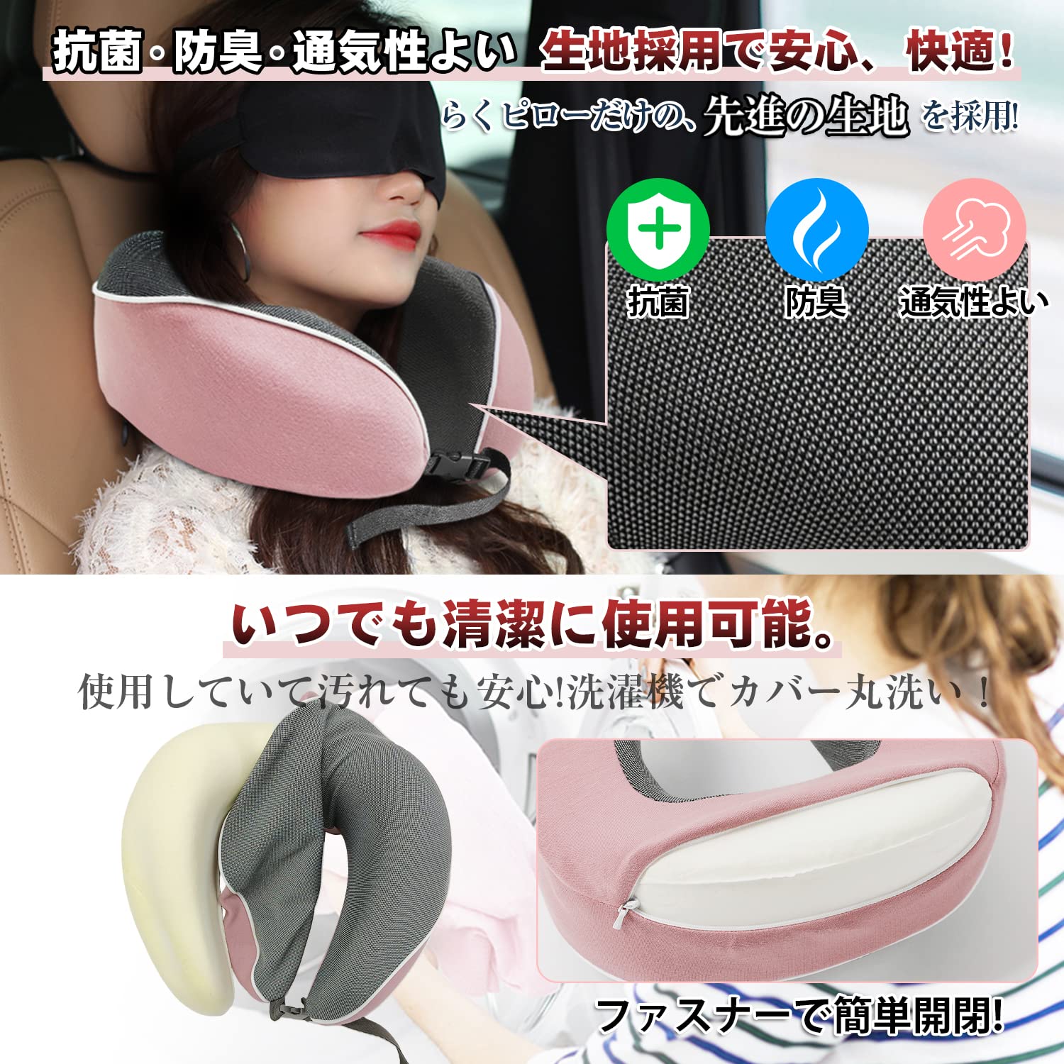 低反発ウレタンなので折りたたんで小さくはなりますが。ネックピローの後ろ部分のファスナーを開けることで、カバーは取り外すことができ、汚れたら洗濯できちゃう優れもの。お手入れが簡単なので、いつも清潔に使用できるのもポイントです。