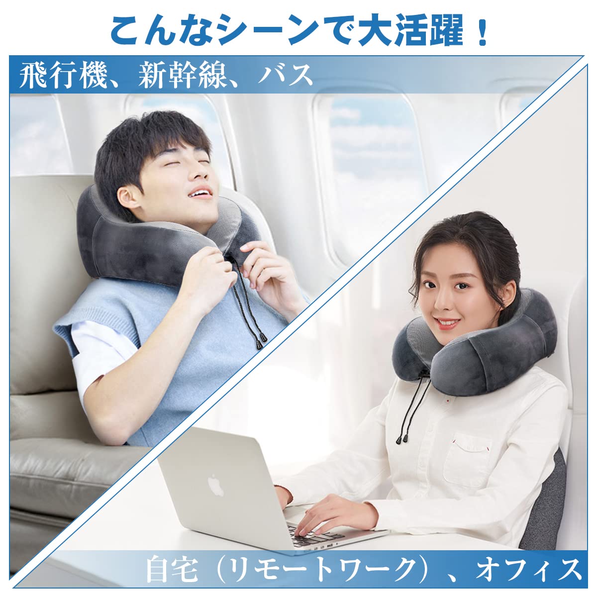 まくらには低反発で通気性のウレタンフォームを使用しております。カバーは100%コットンなので肌が弱い人でもOK、気持ちよく眠ることができるでしょう。また、空気を入れる必要がないので子供にも使いやすいネックピローです。