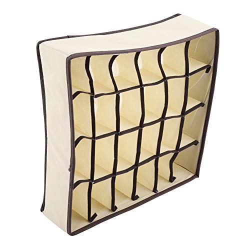1.効果的な分類: この下着オーガナイザーは14のコンパートメントがあり、広々としています。小物や赤ちゃんの靴下は、重ねて収納すると探しにくいし、不衛生です。赤ちゃんの物って本当に小さいから大人と同じように収納すると奥底に隠れてしまうので、仕切りが付いているおかげで整理整頓が出来て見た目も綺麗になるし使い勝手が良いです。 2.一目瞭然: 下着、靴下、ネクタイ、スカーフ、ブラジャー、アクセサリーを分類できる下着オーガナイザーです。すべて取り出しやすく、とても軽いので移動も簡単です。 各マスには靴下がたっぷり入ります。 3.優れたデザイン: ディバイダーボックスは滑り止め加工が施されており、積み重ねることができるため安定性に優れています。仕切りボックスは積み重ね可能で、安定性が良く、小さな振動で転倒することはありません。使わない時は、ファスナーを開けて畳むだけで、スリムになります。 製品詳細: 材質:ポリエステル ナイロン 色: ライスホワイト 商品の寸法: (約)32奥行きx10幅x3高さcm 製品重量: (約)160g 商品用途 使用方法:ベビー用品、衣類