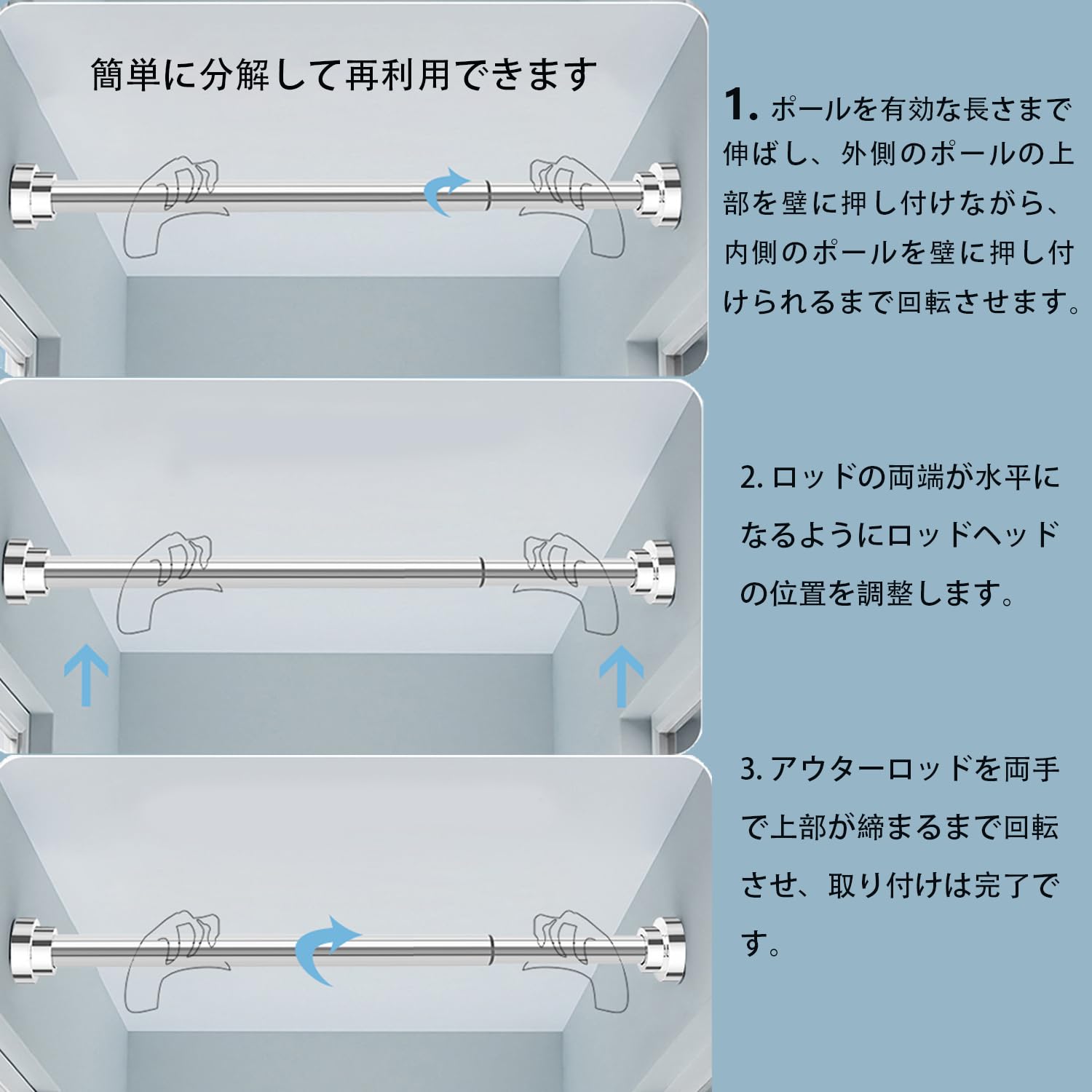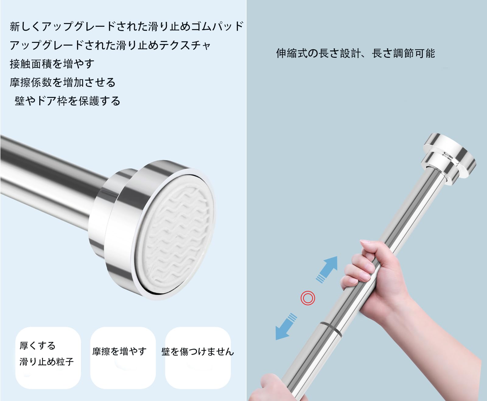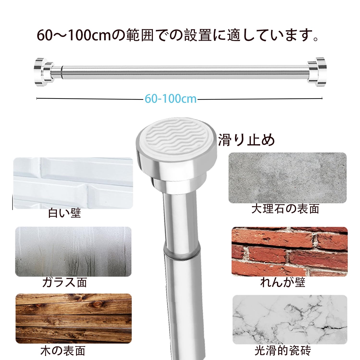 ZENG YUAN 強力つっぱり棒 突っ張り棒 ツッパリ棒 ステンレス鋼 室内 お風呂場 浴室 幅90-160cm 取 付寸法 95~155cm耐荷重60~10kg