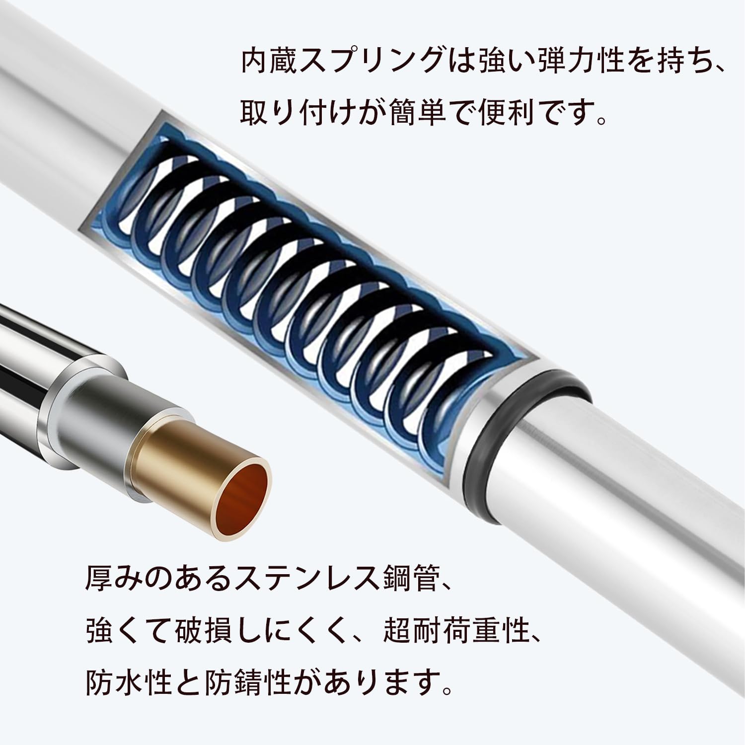 突っ張り棒 強力つっぱり棒 ツッパリ棒 幅50-240CM 浴室用ステンレス超強力伸縮棒 取付寸法 115~190cm 耐荷重60~15kg