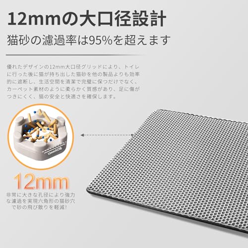 猫用トイレマット 猫砂取りマット 60x45CM 猫砂の飛び散り防止 蜂房の設計 マット 二重構造 砂取りマット 再利用可能 ペットキレイ 洗える 掃除簡単 EVA滑り止め 防水 マッサージ式 高耐久 (グレー)