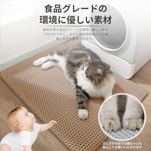 猫用トイレマット 猫砂取りマット 60x45CM 猫砂の飛び散り防止 蜂房の設計 マット 二重構造 砂取りマット 再利用可能 ペットキレイ 洗える 掃除簡単 EVA滑り止め 防水 マッサージ式 高耐久 (カーキ)