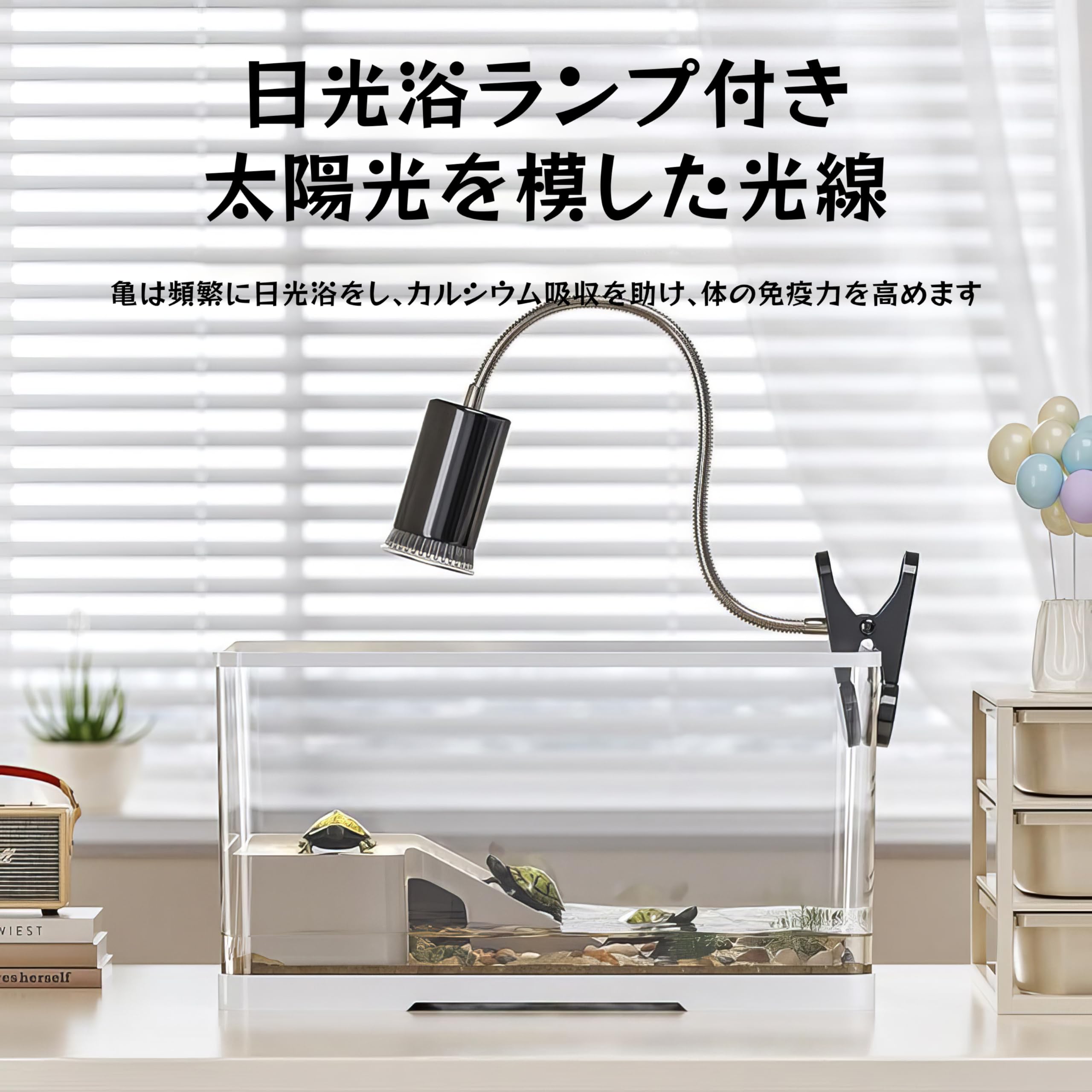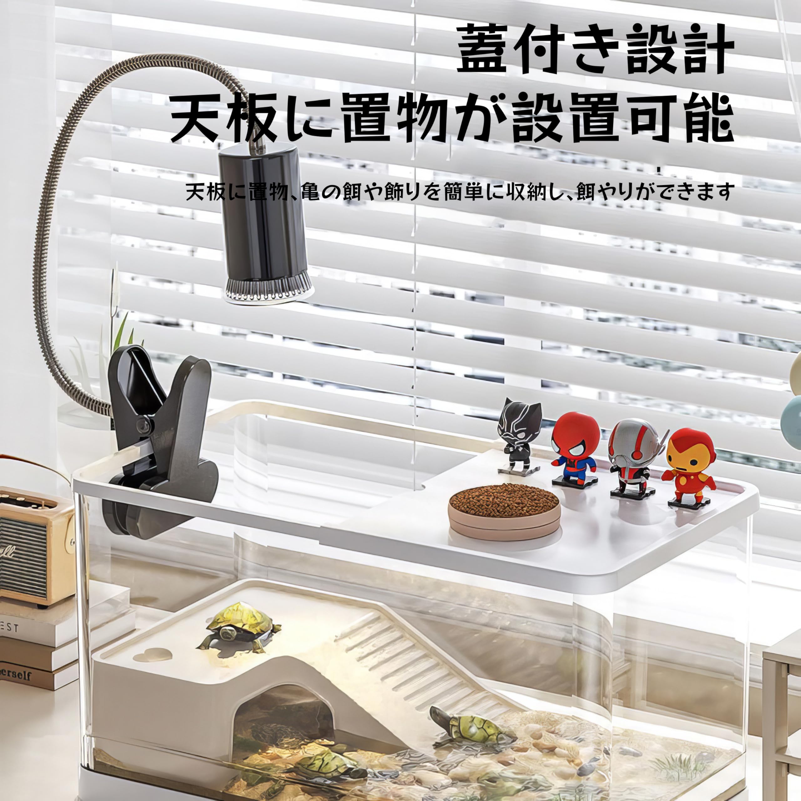 亀 水槽 大きい タートルタンク カメ用水槽 カメ生息地 亀観察飼育用 リクガメ ケージ 水槽セット 亀の水槽 水換え簡単 脱出防止素敵なデザイン W39*D21*H21CM (M)