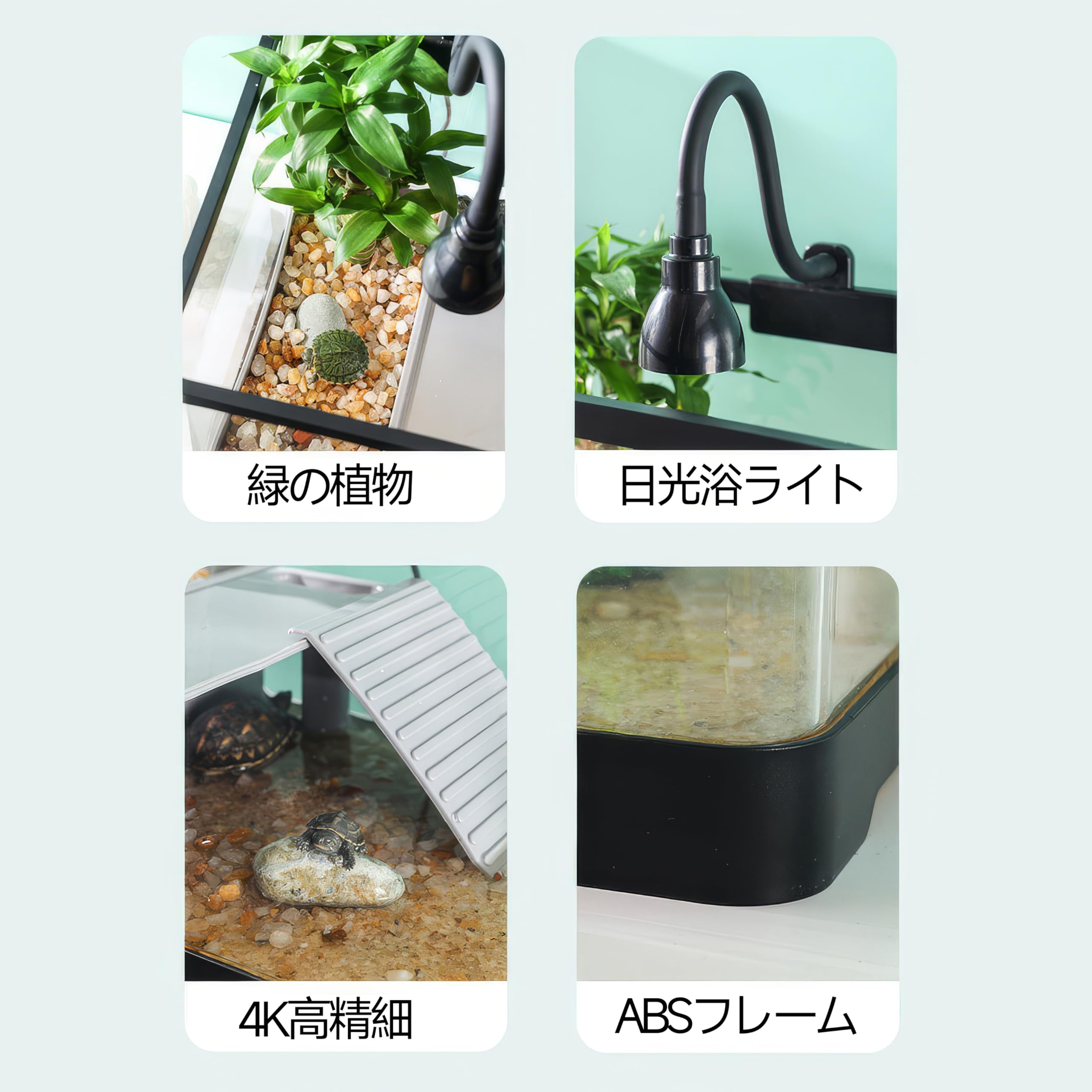1.【高品質の素材で作られており】亀を安心して飼うことができる,グレードのPPプラスチック素材を採用、冬は暖かく、夏は涼しく、丈夫で耐摩耗性があり、耐久性、耐腐食性、無毒性、無味であり、可愛いの外観は様々な装飾と簡単にマッチさせることができる 2.【素敵なデザイン】亀逃しを防止し、取り付けが便利で、カラーはクリーム、オレンジ、ミントグリーンの三色があり.S(38*24*14cm)M(50*27.6*17.9cm)、L(66*35*18cm)、三つの規格を採用、様々な選択を与えます。商品ページの写真はご参考になりますので、サイズについて、物差しなどで計りて見ることを勧めます。 3.【水換え簡単】水切り設計で亀の糞や食べ残しが底部に落す、水換えしやすく汚れてもお手入れ簡単。排水バスケットを直接持ち上げて、造園の損傷を恐れず、直接すすぎ、時間と労力を節約します。 4.【水陸両用】遊泳エリア・階段・エサ台・日向ぼっこ台と、バリエーションに富んだスペース分けがされた水槽。十分なスペースがあり、ライトや各種飼育用品が設置しやすいのもうれしいところ。動き回るスペースが大きいので亀の運動不足も解消できます。 5.【ダブル給餌トラフ設計】肉と野菜が一致し、飼料とスナックが分離され、カメはより栄養価が高く、健康的かつ迅速に成長します。造木をセットできるくぼみなどカメにも飼い主にもうれしい工夫が詰まっています。 6.「DIYコーナー」お好みで石ころや植物を飾り、カメさんの楽園を作りましょ.ご不明な点がございましたら、お気軽にお問い合わせください、24Hで問題を解決するために返信いたします。商品ページの写真はご参考になりますので、サイズについて、物差しなどで計りて見ることを勧めます。