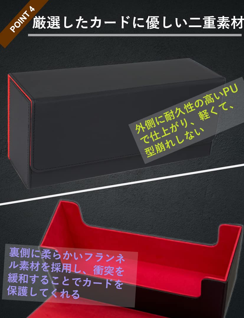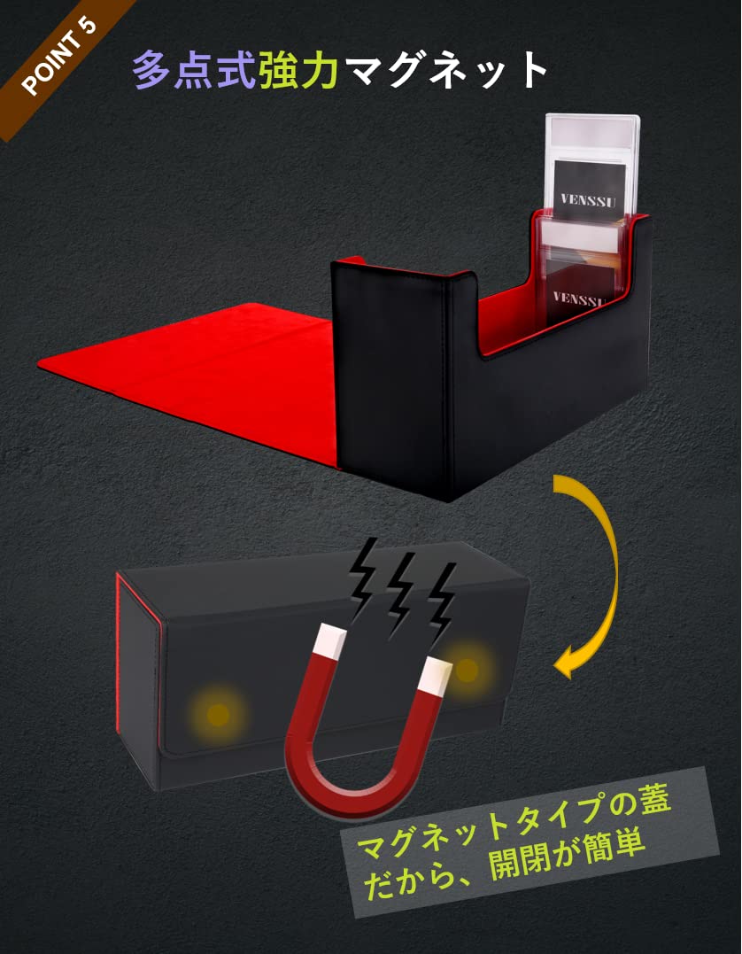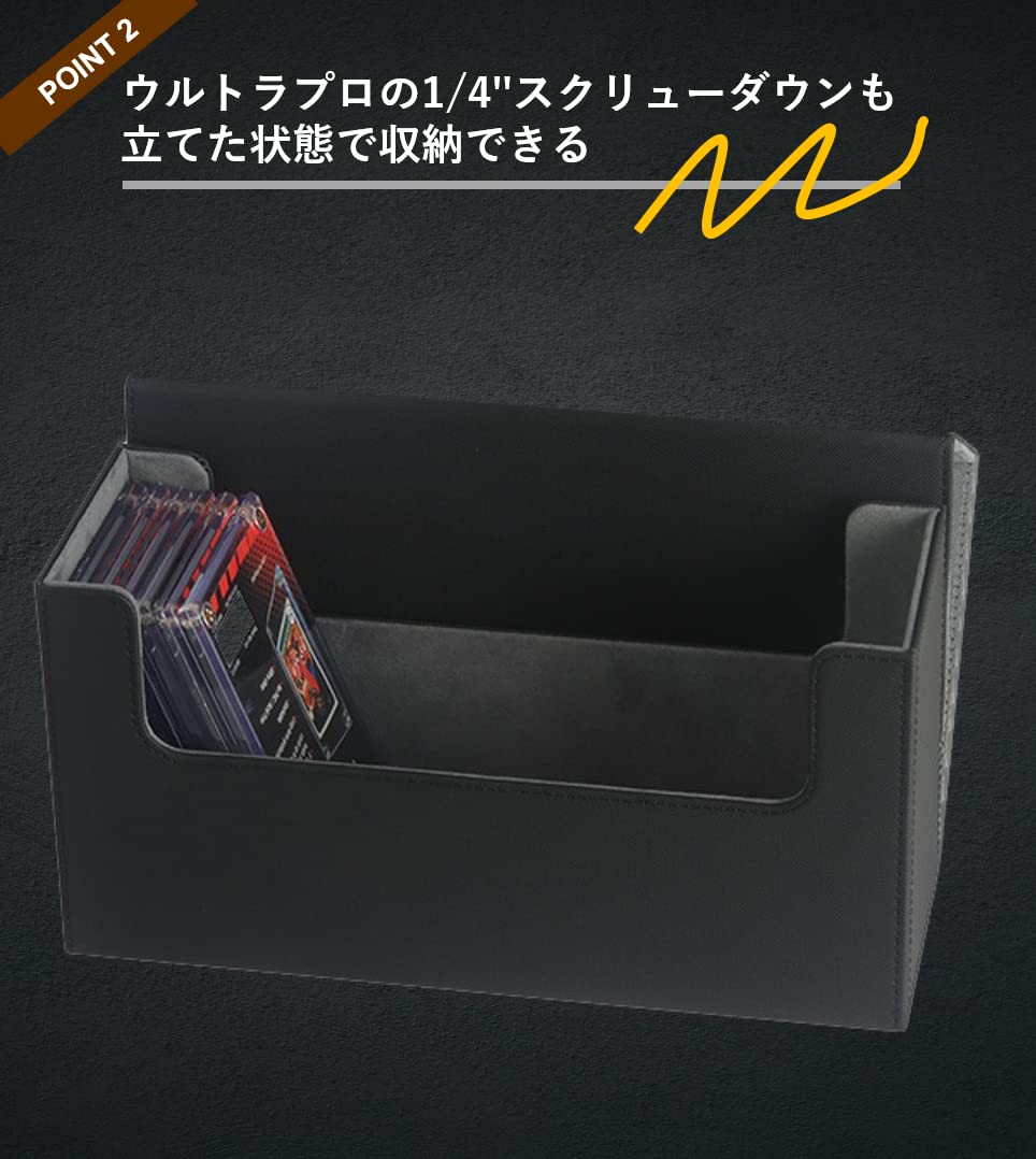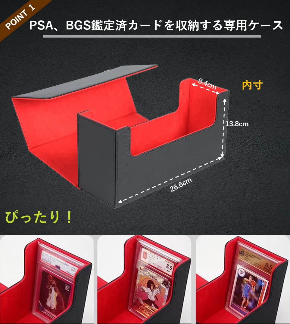 PSA BGS 鑑定カード用ケース スクリューダウン 収納ボックス デッキケース カードケース トレカケース 保管 PU レザー Lサイズ (40枚収納, 黒内装赤)