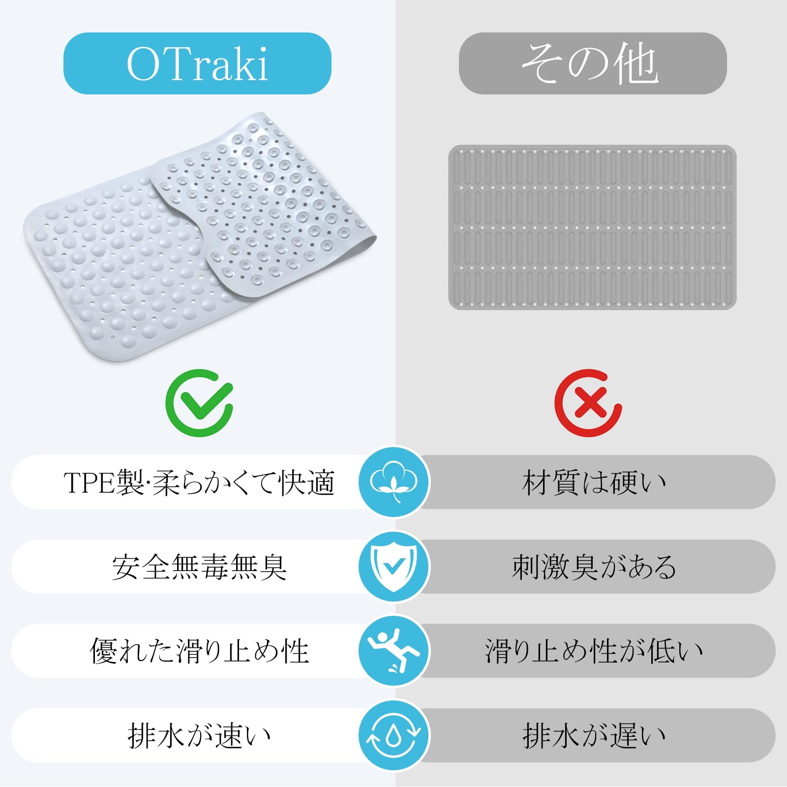 OTraki お風呂 すべり止めマット TPE製 40×100cm 浴槽内滑り止めマット 介護 黒 200個吸盤付き 柔らかい 転倒防止 防菌 防カビ 老化防止 浴槽マット 浴槽内 滑り止め Bathtub mat 洗い場 出入り口適用 介護用品 ブラック