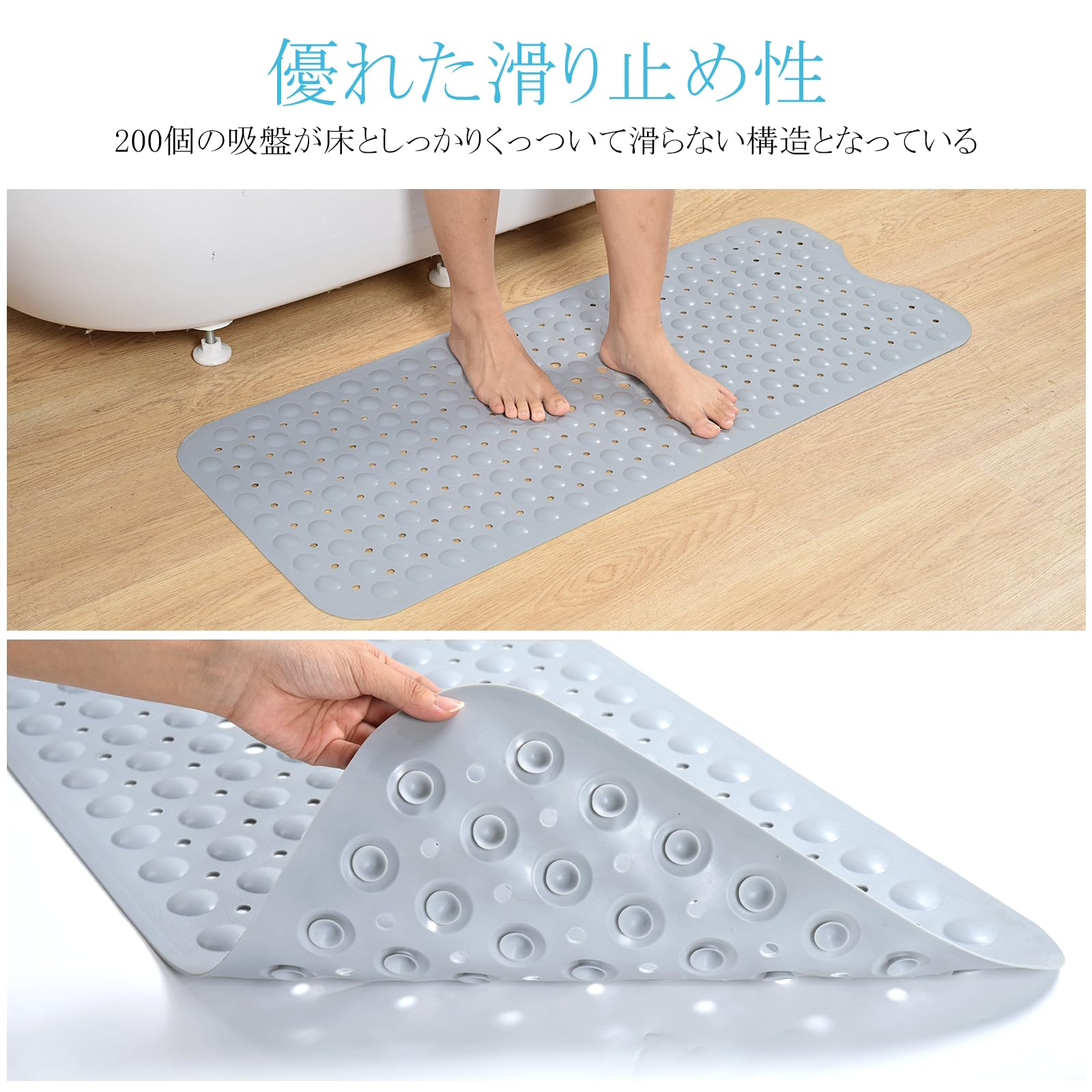 TUYOBI バスマット お風呂 浴室内 滑り止め 吸盤付き 介護用 浴槽内 防カビ 抗菌 すのこ 転倒防止 速乾 TPE製 マッサージ機能 清潔 大判 グレー 58*88CM