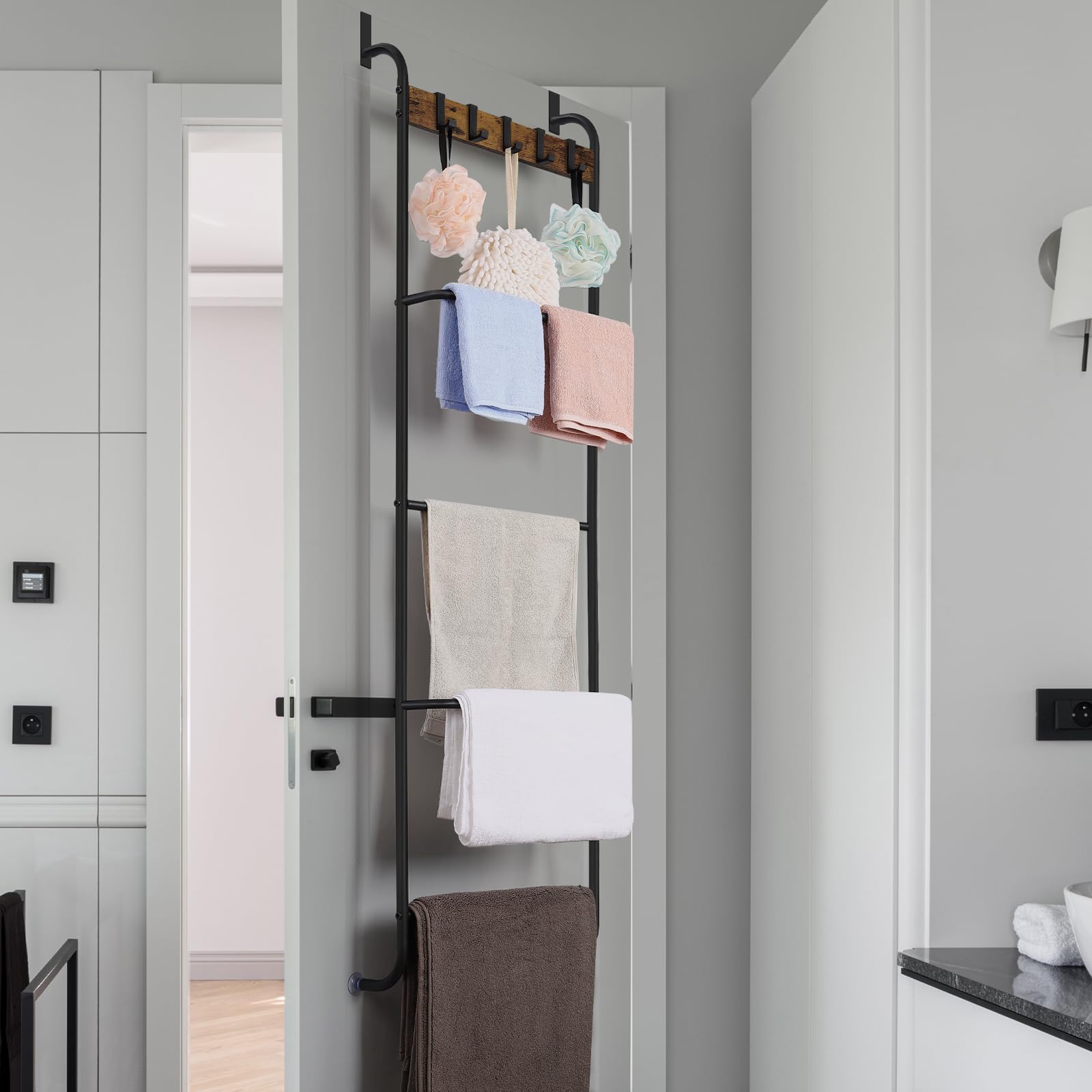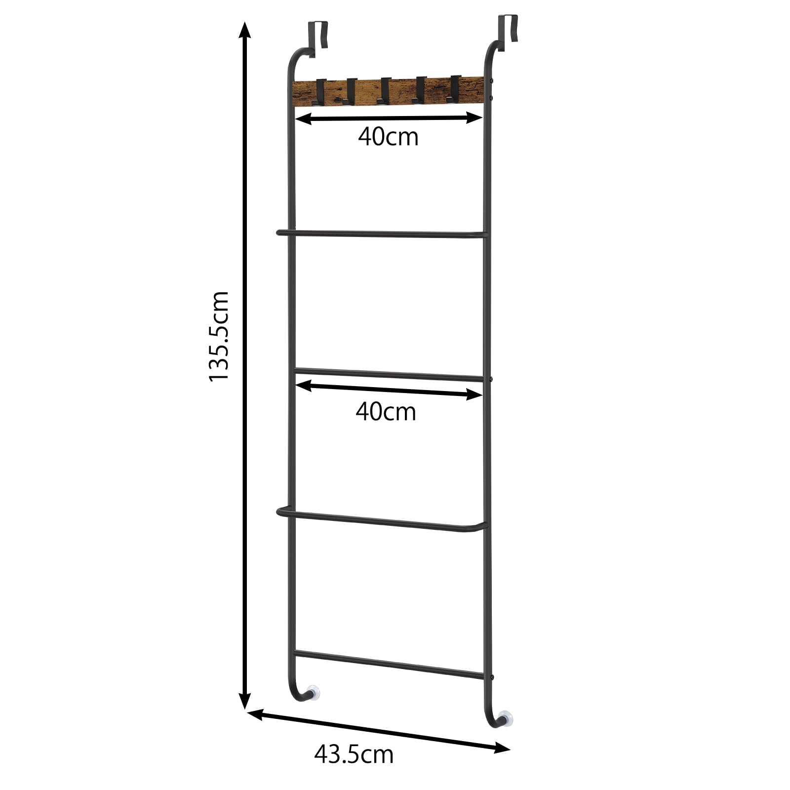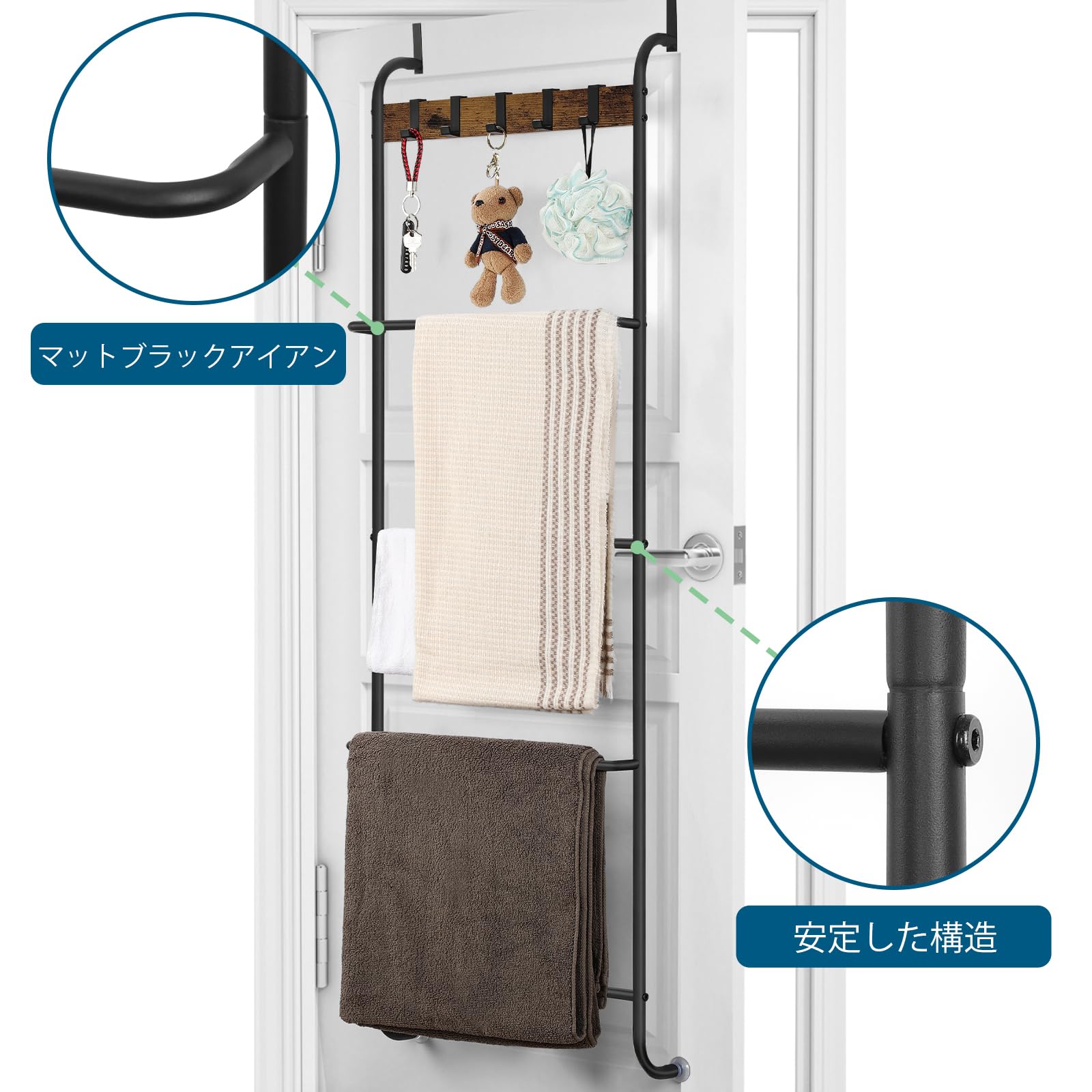 吊り下げ収納ラックはドアの後ろに吊り下げて、スペースを有効に節約しながらアイテムを保管できますタオル、スカーフ、バスタオルなどのアイテムを保管できます鍵、傘、その他の小物を掛けるためのフックが5つ付いています。
