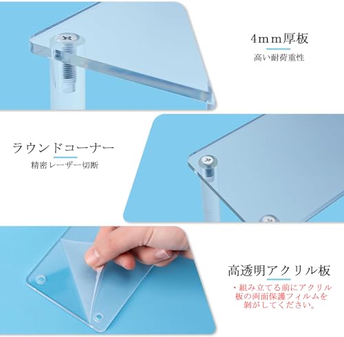 設置説明書に従って、アクリルシリンダーレッグとアクリルパネルを接続し、金属ネジで固定するだけです。 使用前に白い保護フィルムを剥がしてください。