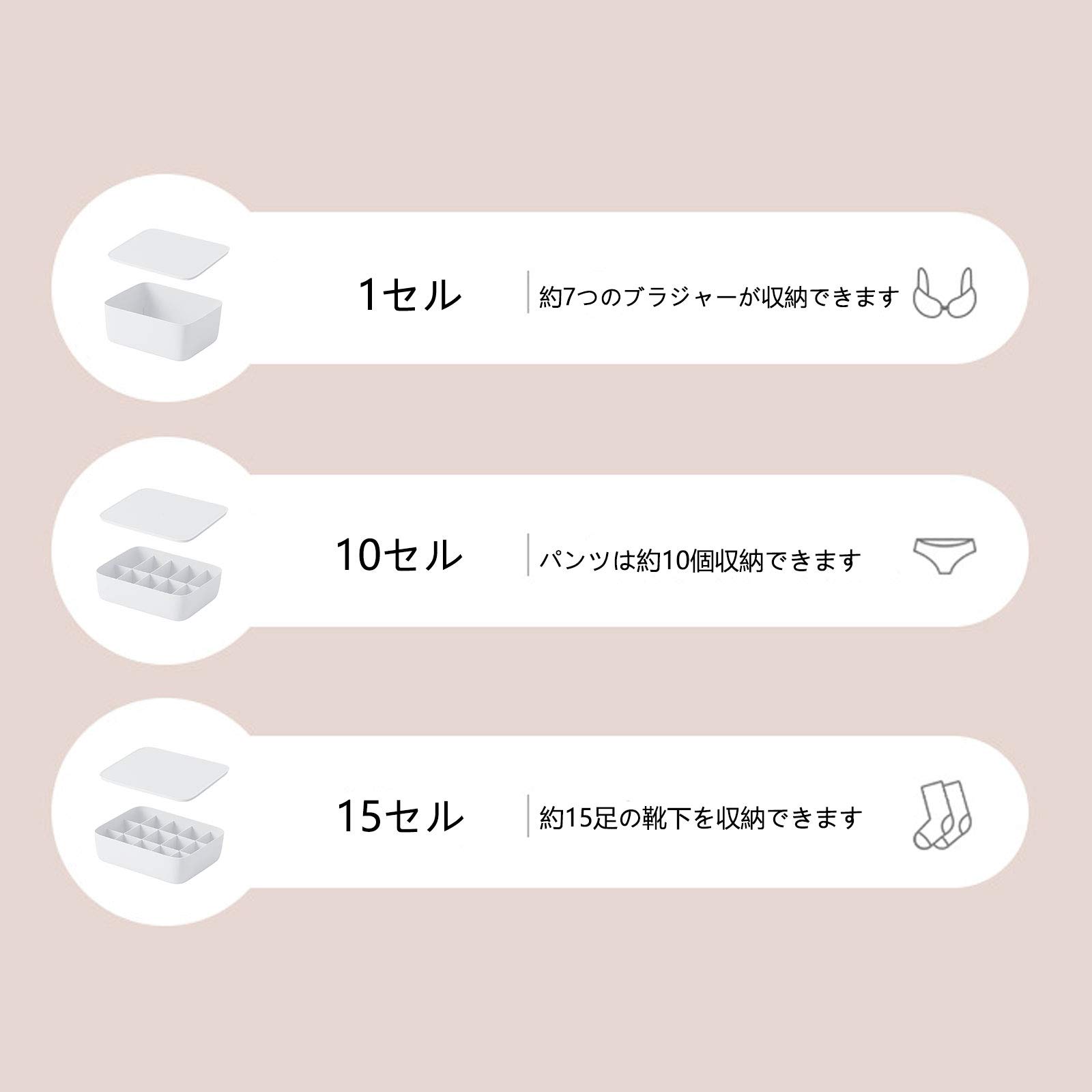 QMO 下着収納ボックス ふた付き 靴下、パンツ、ブラジャー収納便利 10個/15個仕切りケースボックス スペース節約整理防湿防カビ防塵抗菌ほこり防止引き出し仕切り水洗い ホワイト (15セル)