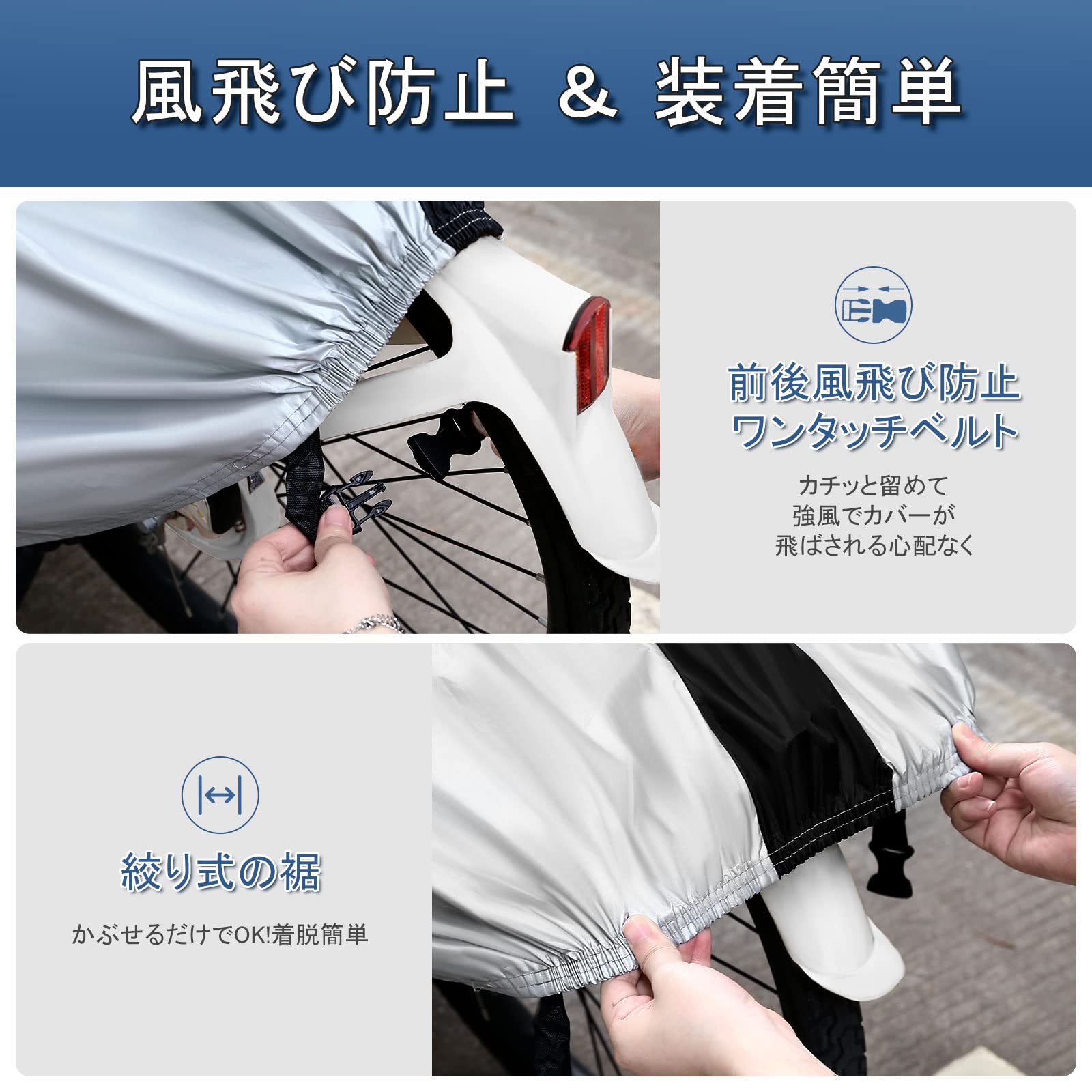LIHAO 自転車カバー 防水 厚手 210D 大型 サイクルカバー 破れにくい 防犯 撥水加工 29インチまで対応 風飛び防止 UVカット 盗難防止 装着簡単 収納袋付き シルバー×ブラック