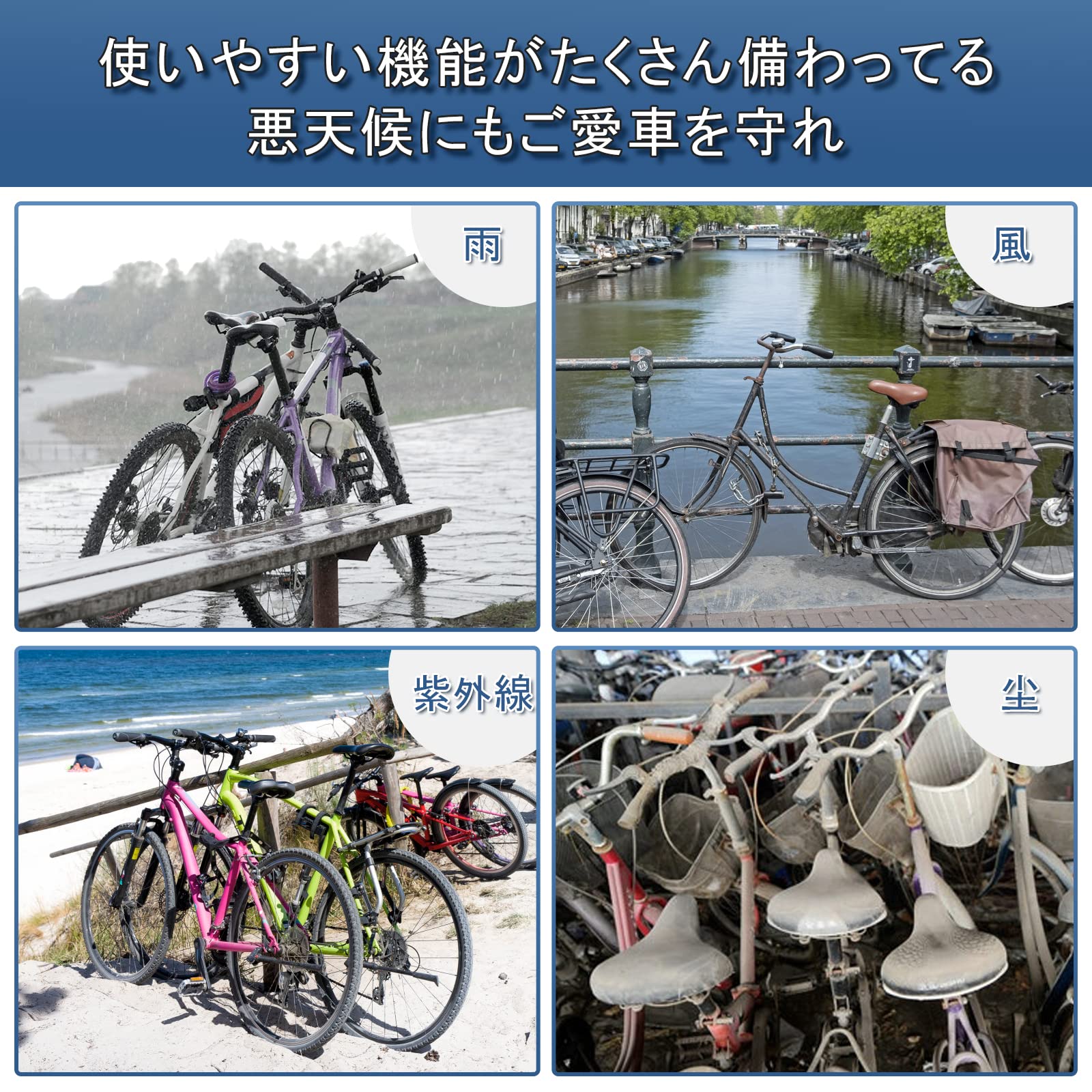 OFFBAIKU 自転車カバー【ファスナー付き 全被りタイプ】子供乗せ 210-420D材質 防水撥水加工 破れにくい 防風 紫外線カット 二重縫製 ロードバイクカバー 電動自転車カバー クロスバイクカバー サイクルカバー 反射ストライプ付き 盗難防止 ポリエステルオックス生地 180cmまで 収納袋付き (300D 通常タイプ)