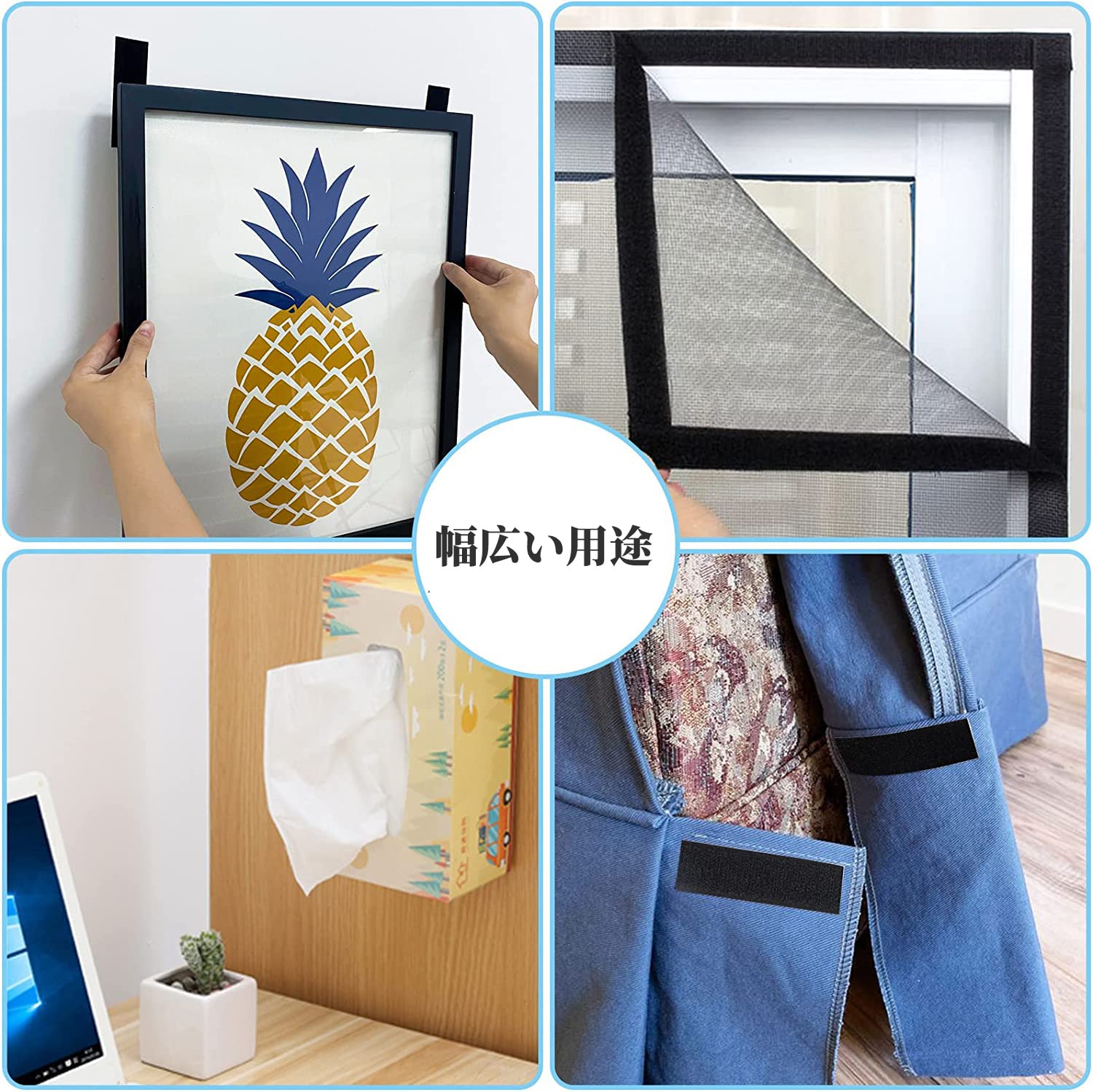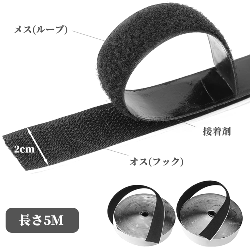 Chouiery 2本セット マジックテープ 面ファスナー 幅2cm 長さ8m マジックテープ 粘着力強い両面テープ付き 強粘着裏糊付 オスメスセット 耐熱 防水タイプ DIY用 業務用 家庭用 車用 工業用 線収納