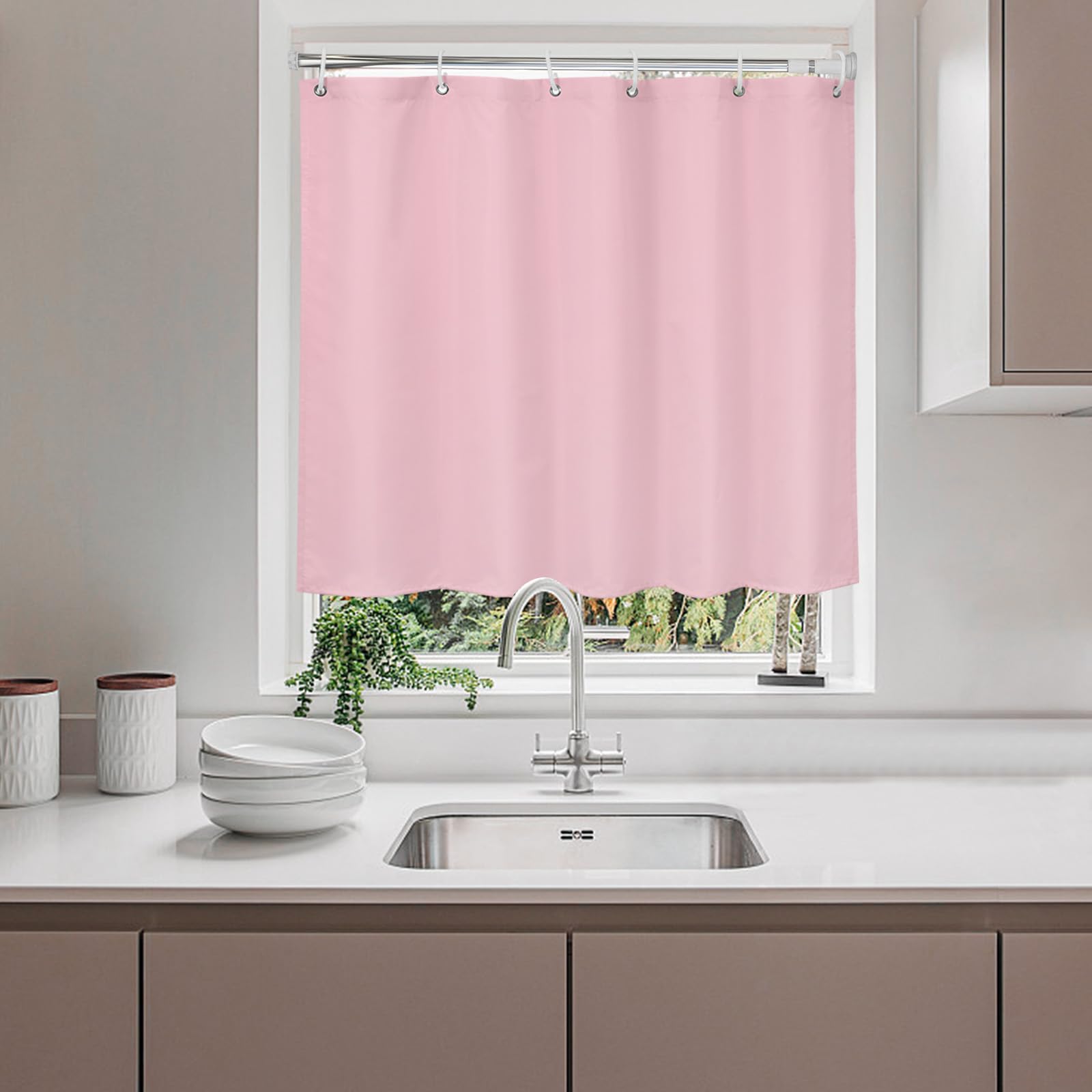 弊社の当お風呂カフェカーテンは100%ポリエステル素材で作り、防水防カビ処理済み、長持ち使用できます。