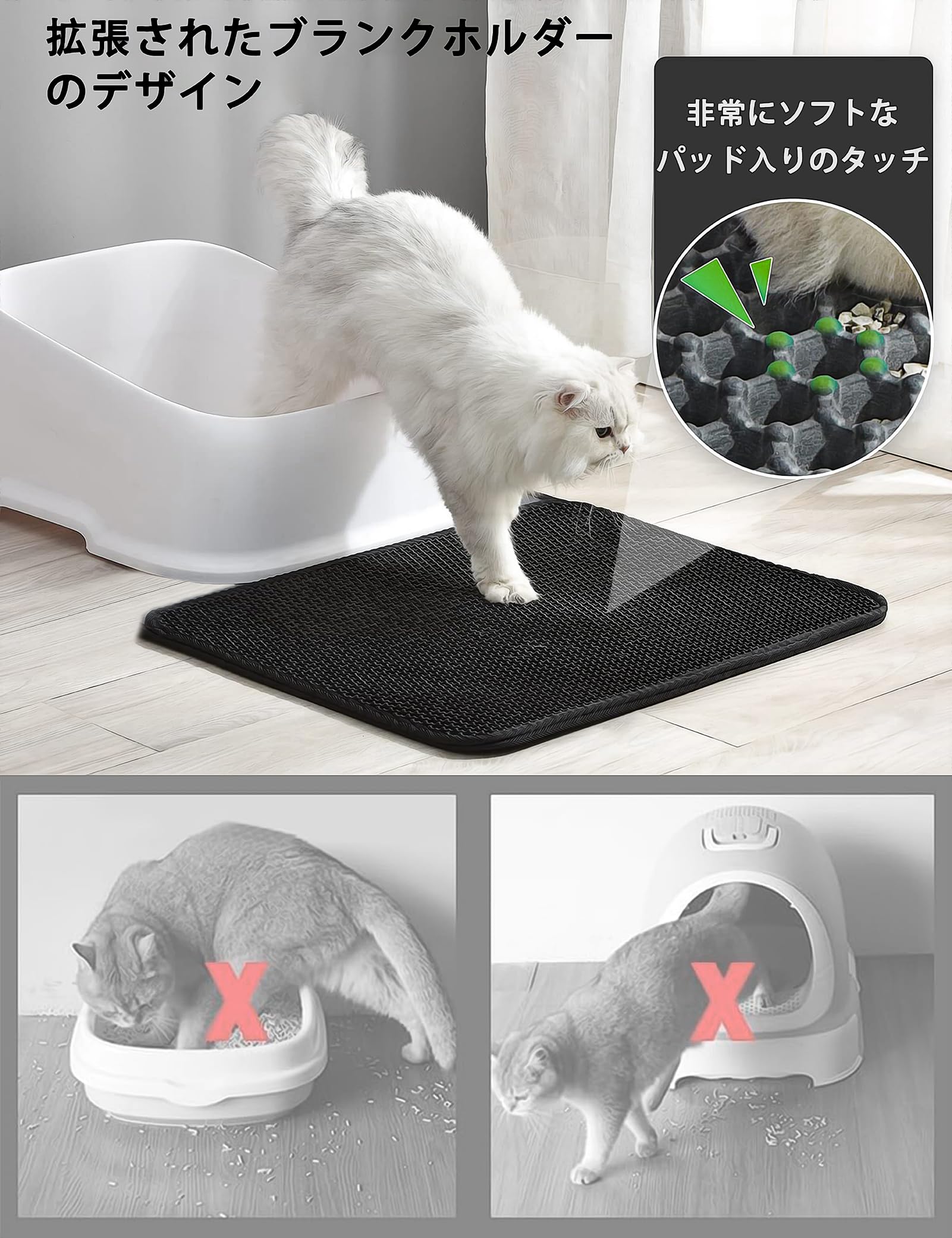 猫トイレマット 飛び散り防止 の起源:あなたは猫の飼い主なら、この体験んはあったはずです。 猫砂スコップ で猫の排泄物をすくうとき,猫砂が床中に散らばっていて、あなたの家具や靴にもあるかもしれません。 猫はただ家中で遊ぶのが好きで、家をそうのようにしたくありません。 簡単に清潔とリサイクルできる 猫トイレマット 飛び散り防止, 猫トイレ袋 スマートな設計-深い溝とハニカム構造により、 猫 砂飛び散り防止 、床に広がっていくのを防ぎます。家を綺麗にすることができます。 猫 トイレ袋 あなたの猫の足を綺麗にする 敷物、衣類、家具などに、猫砂を見つけるのは嫌です。 トイレマット ねこ を使用すると、足をその上に踏むとすぐに綺麗になります。 また、 猫砂とび散り防止マット に落ちたり、溜まった猫砂は、簡単にリサイクルできます。 猫砂とび散り防止マット の特徴: 猫砂とび散り防止マット の特徴: 散らからない砂 、 猫 砂飛び散り防止 、 猫 トイレ 砂飛び散り防止 ( 猫 トイレ 砂が飛び散らない )、 猫トイレマット 砂飛び散り防止 。 スマートキャットリターマット は次のような用途に適している: ネコ トイレシート の下に敷いたり、 おねこさま トイレ の外に置いたり、 飛び散り防止シート トイレ として使用できます。 砂飛び散り防止マット に使用する 猫用トイレ使用する場合,可能 猫砂 とびちり防止 , 猫トイレ シート の環境を美的にすることができる。この 猫 トイレマット 飛び散り防止 猫砂,だから、頻繁に掃除をする必要はない 猫トイレシート猫用 。