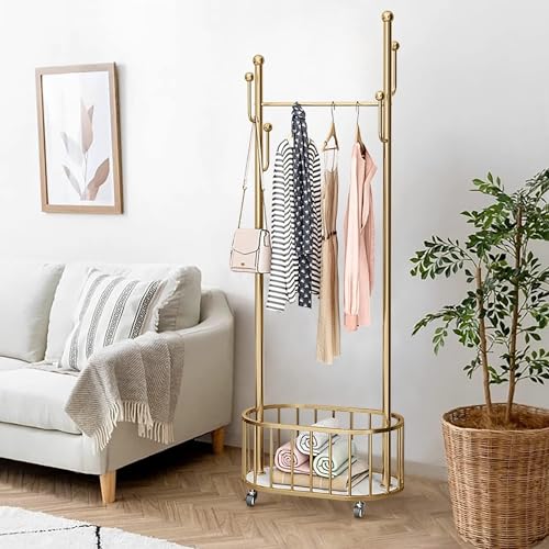 BOOSDEN ハンガー ラック スリム コート掛け カバン掛け 洋服掛け 衣類ラック 服掛け 棚付き コートラック 衣類収納 トローリーハンガー シングル ストッパー付きキャスター 頑丈 玄関 おしゃれ