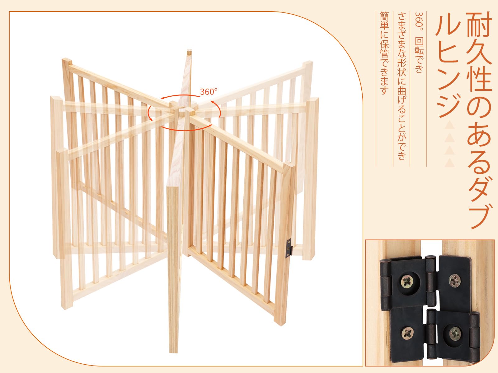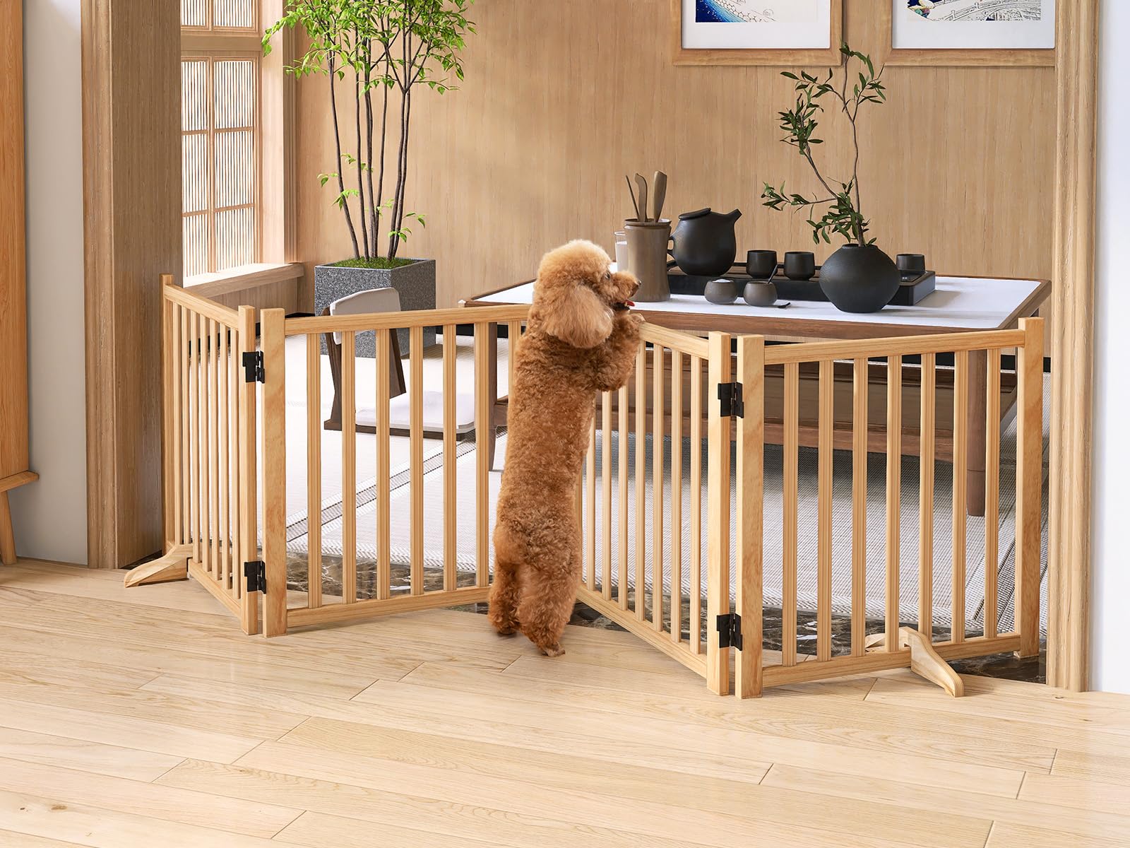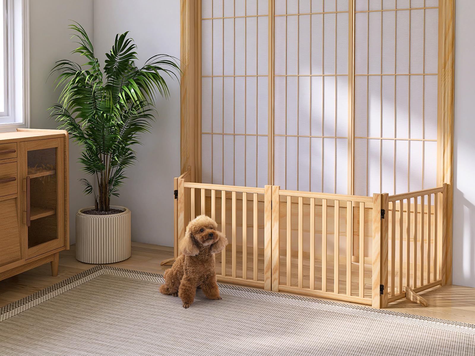 犬用 ペットゲーなペットフェンス、犬用ゲート 天然木色 、犬用フェンス、折り式バリア、ペット用家具フェンス 、安全柵 小型犬 中型犬 脱走防止 ガード 飛び出し防止 多頭飼い ペットガード