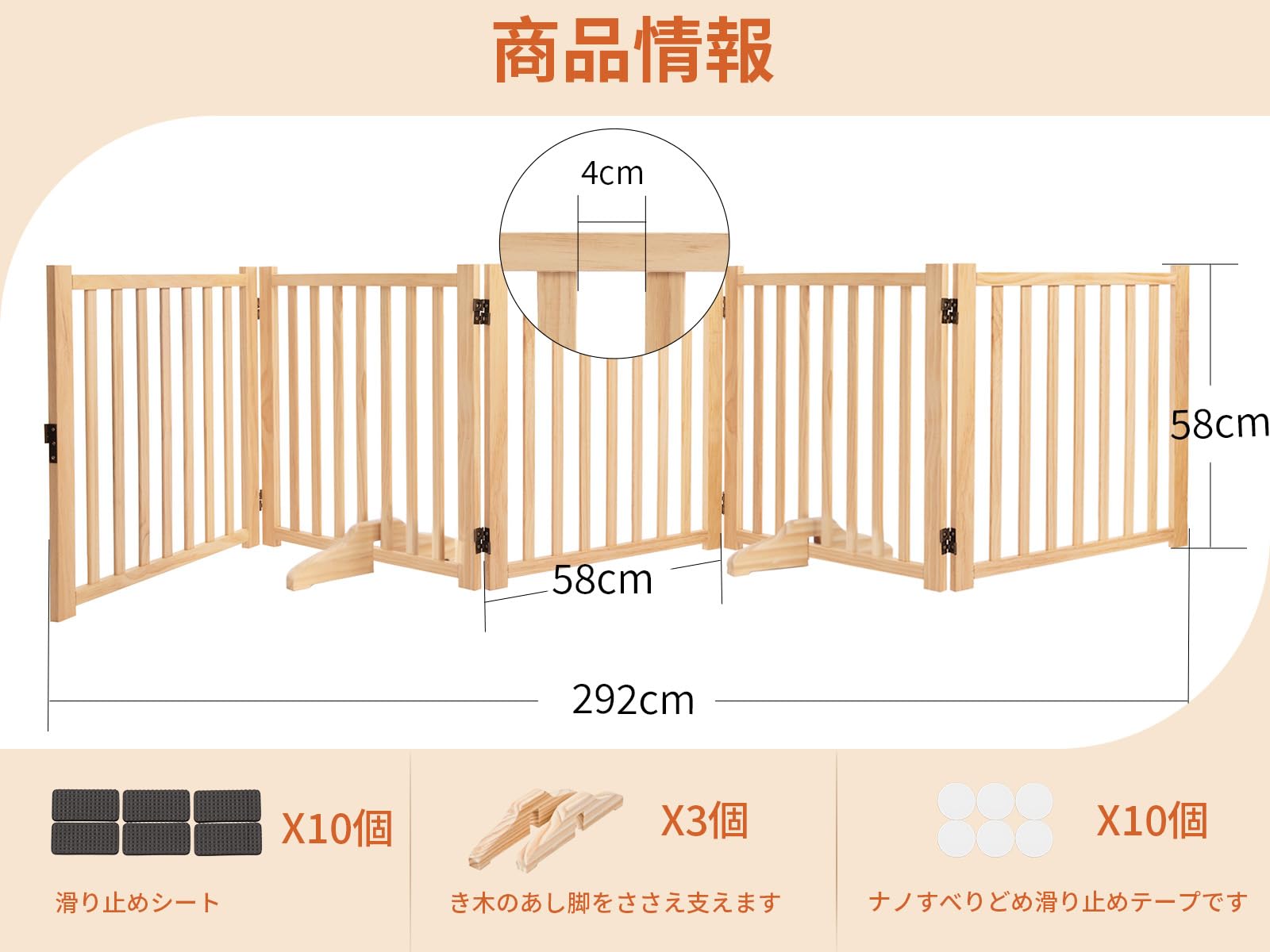 木製自立式ドッグゲート (5枚、 高さ58cm 長さ292cm)