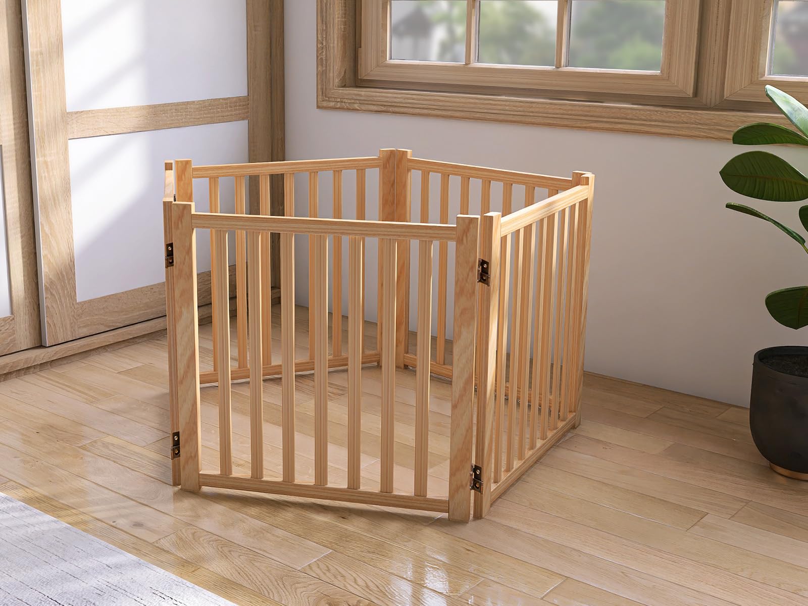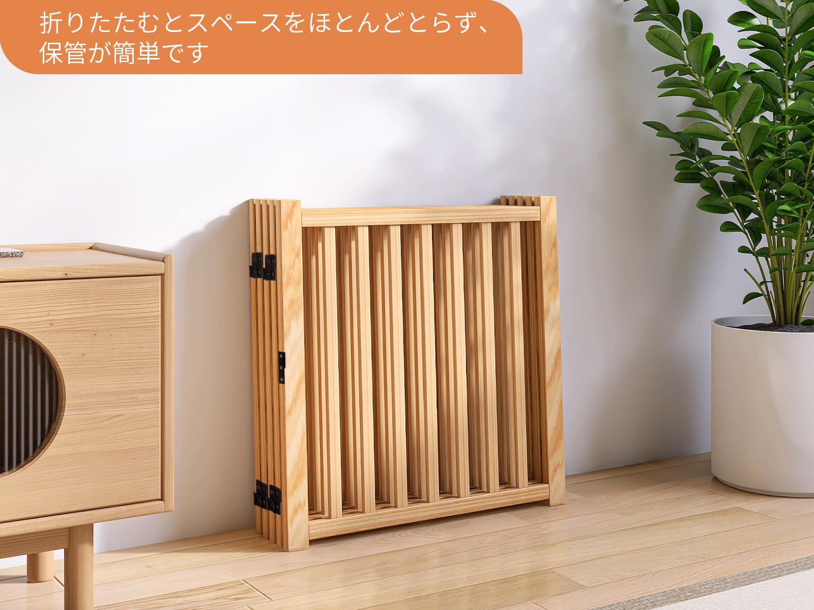 犬用 ペットゲーなペットフェンス、犬用ゲート 天然木色 、犬用フェンス、折り式バリア、ペット用家具フェンス 、安全柵 小型犬 中型犬 脱走防止 ガード 飛び出し防止 多頭飼い ペットガード