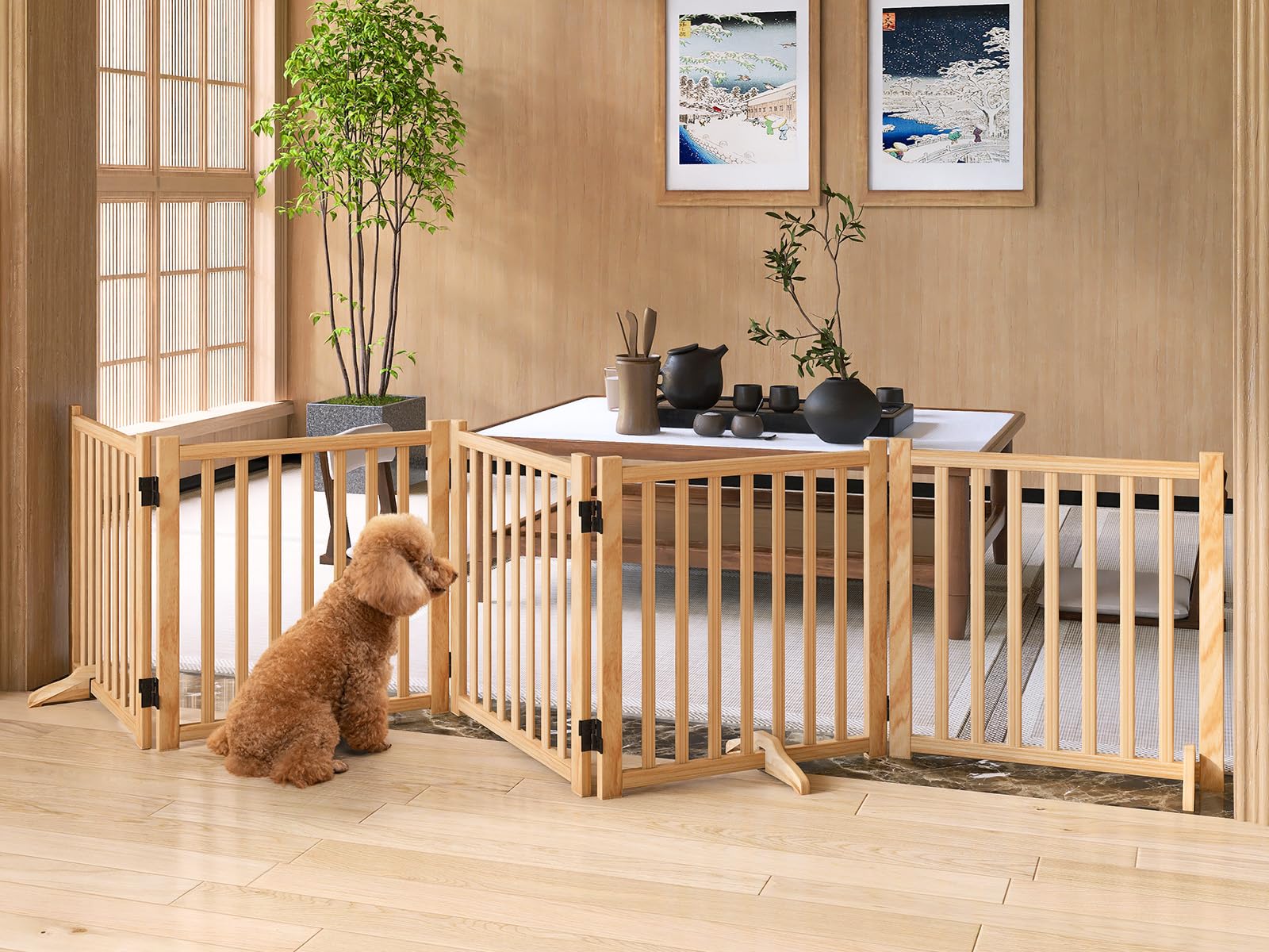Oapety ペットゲート ペットフェンス 室内犬用 折りたたみ式 木製 犬 柵 脱走防止 飛び出し防止 高さ43cm 幅234cm 倒れない設計 簡単設置 中小型犬用